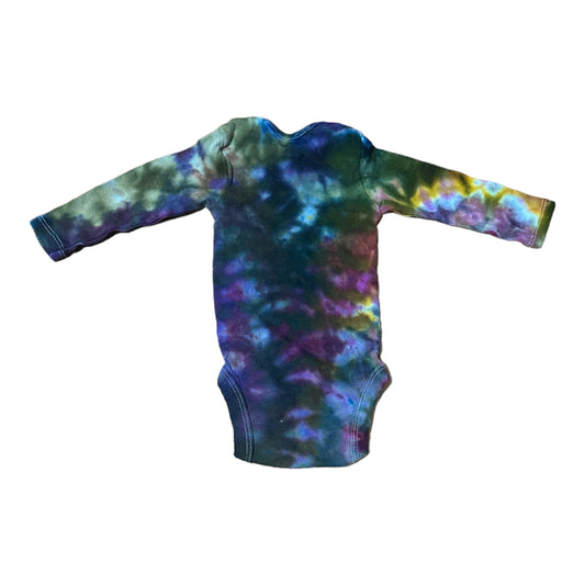 Infant 0-3 Months Purple Yellow Blue and Green Scrunch Ice Dye Tie Dye Long Sleeve Onesie