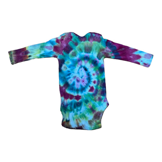 Infant 0-3 Months Fuchsia Blue and Green Spiral Ice Dye Tie Dye Long sleeve Onesie