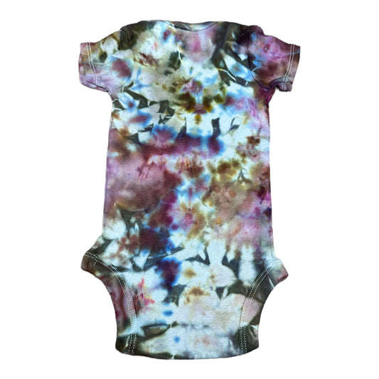Infant 0-3 Months Blue Brown and Purple Scrunch Ice Dye Tie Dye Onesie