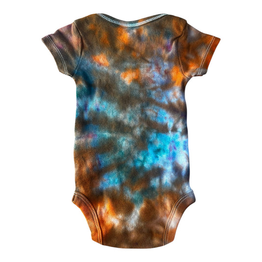 Infant 0-3 Months Blue Brown and Orange Scrunch Ice Dye Tie Dye Onesie