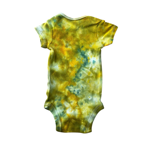 Infant 0-3 Months Green and Yellow Scrunch Ice Dye Tie Dye Onesie