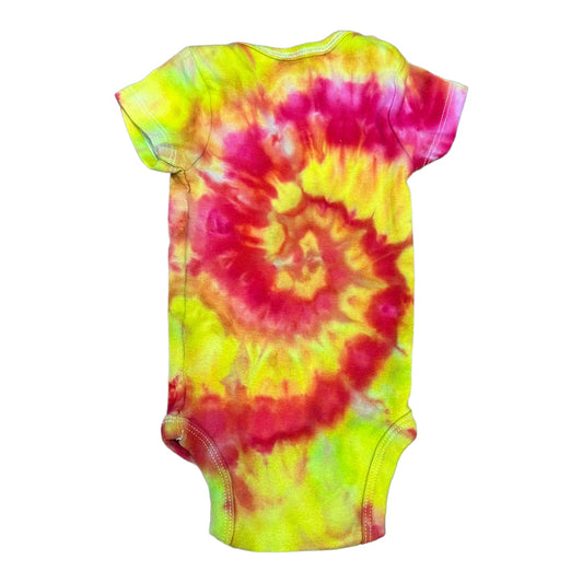 0-3 Months Yellow Green and Pink Spiral Ice Dye Tie Dye Onesie
