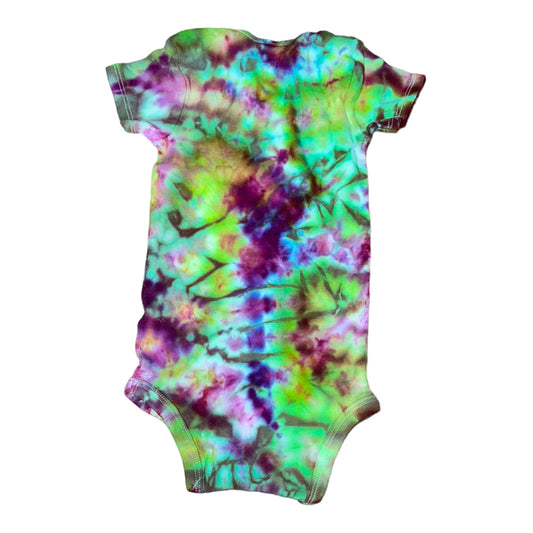 Infant 18 Months Purple Blue Green and Yellow Scrunch Ice Dye Tie Dye Onesie*