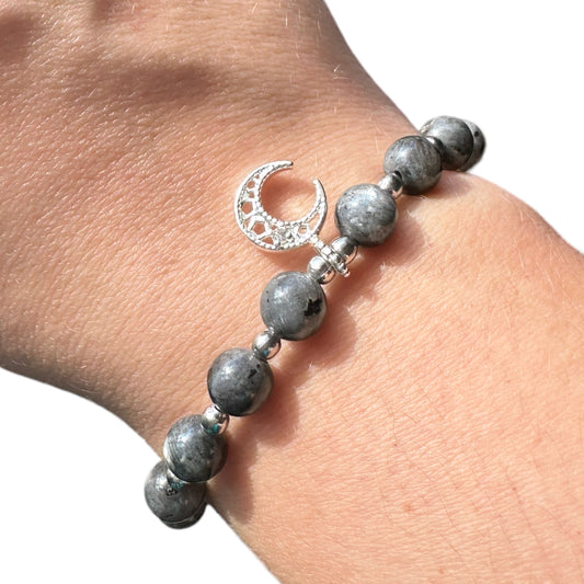 Larvikite Adjustable Moon/Star Crystal Bracelet