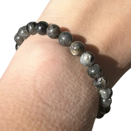 Larvikite Beaded Elastic Crystal Bracelet