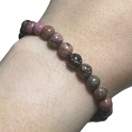 Rhodonite Beaded Elastic Crystal Bracelet
