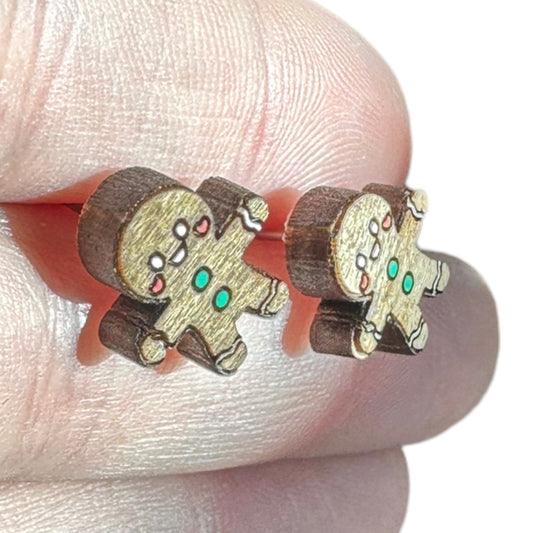 Hypoallergenic Christmas Gingerbread Man Laser Engraved Wood Earrings