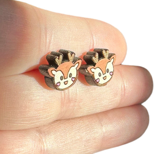 Hypoallergenic Christmas Reindeer Laser Engraved Wooden Earrings