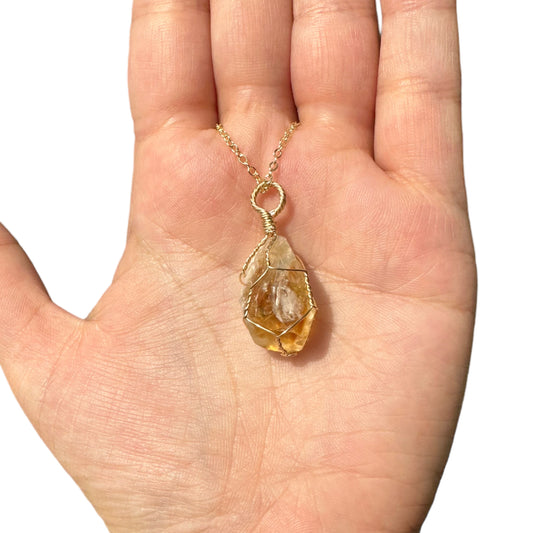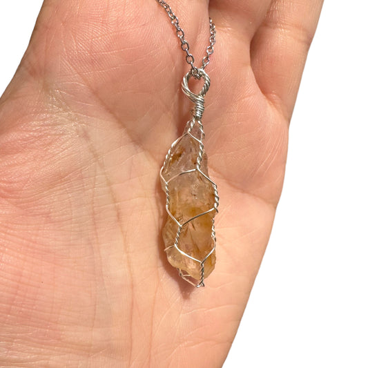 Sterling Silver | 14KT Gold Filled Wire Wrapped Raw Citrine Caged Pendant