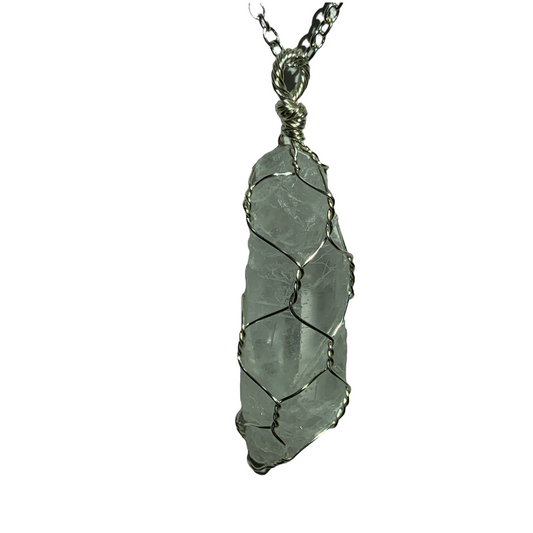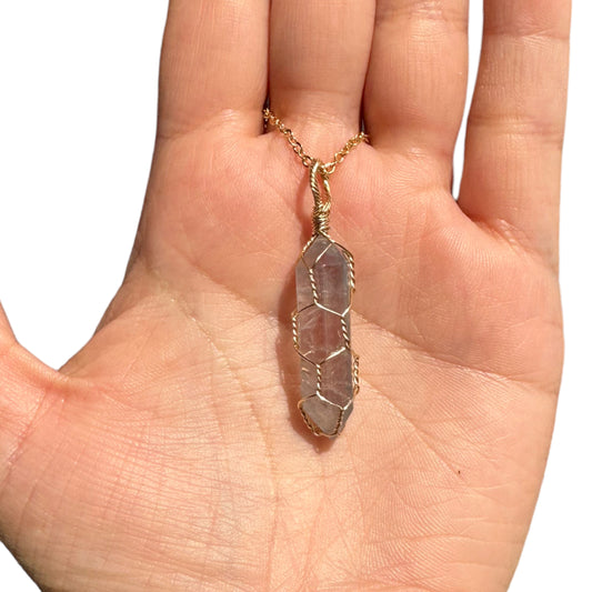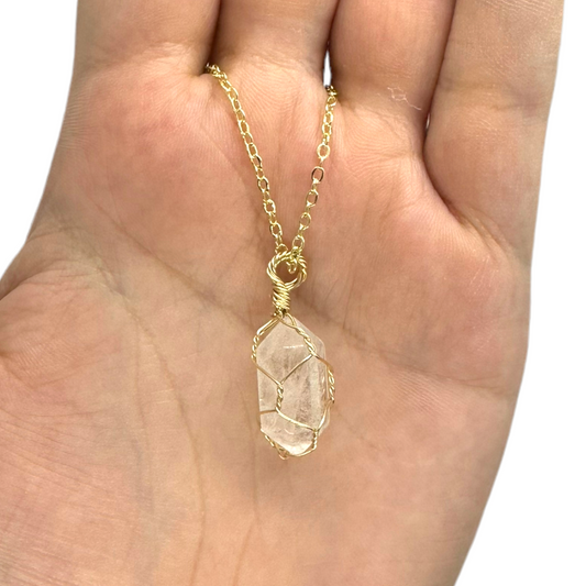 Sterling Silver | Gold Raw or Double Terminated Clear Quartz Caged Wire Wrapped Pendant