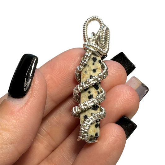 Sterling Silver Dalmatian Japser Coiled Cage Crystal Pendant