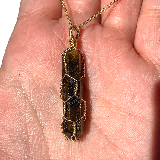 Sterling Silver | 14KT Gold Filled Wire Wrapped Raw Golden Healer Caged Pendant