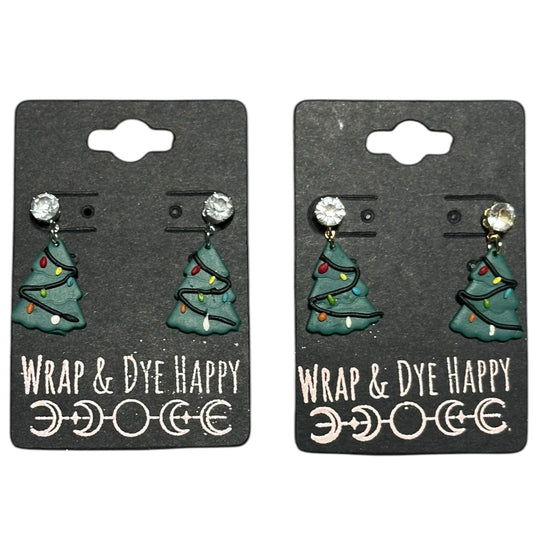 Hypoallergenic Hand Painted Christmas Tree Dangle Clay Earrings