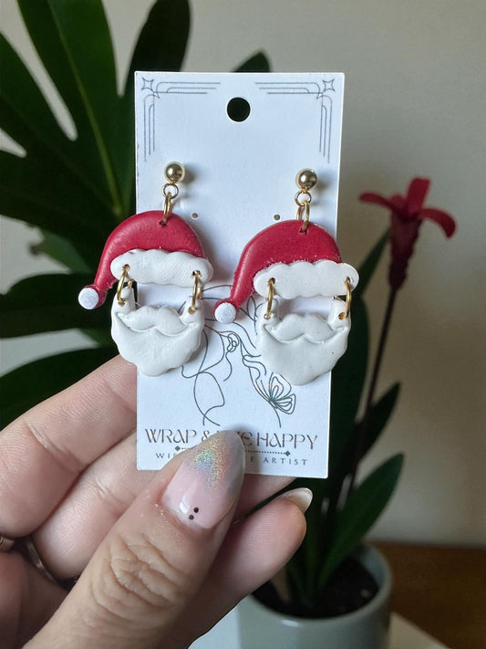 Hypoallergenic Clay Santa Dangle Clay Earrings