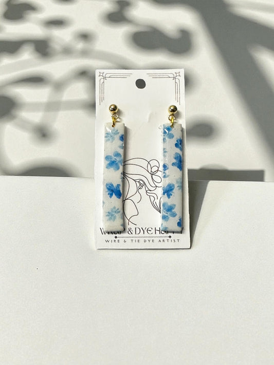 Hypoallergenic Blue Wildflower Floral Teardrop Clay Dangle Earrings