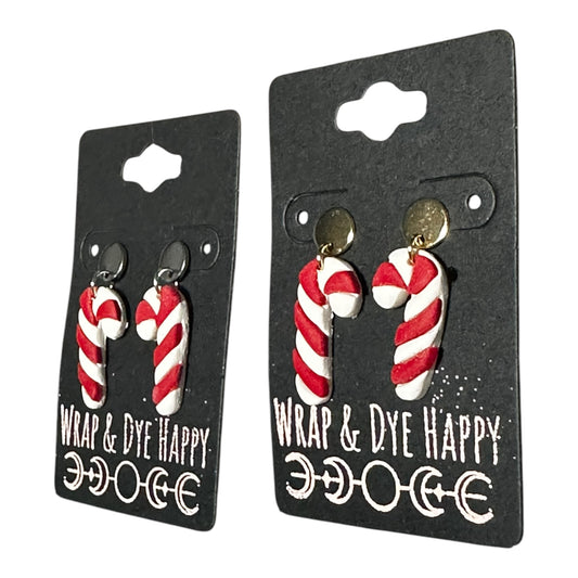 Hypoallergenic Candy Cane Dangle Clay Earrings