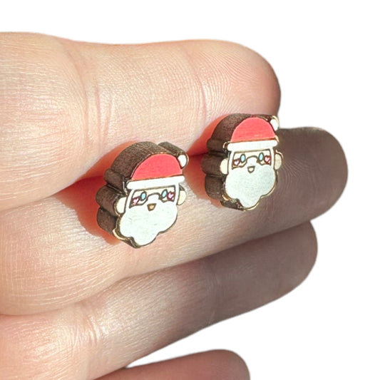 Hypoallergenic Christmas Santa Claus Laser Engraved Wooden Earrings