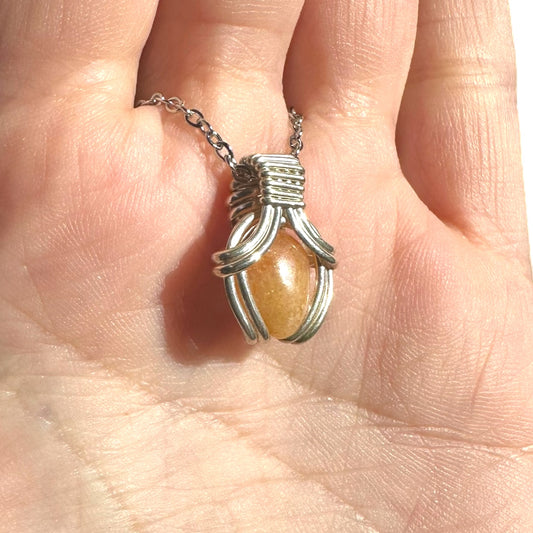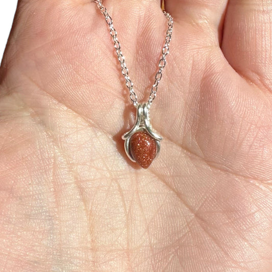 Sterling Silver | 14KT Gold Filled Mini Teardrop Goldstone Wishbone Wire Wrapped Pendant