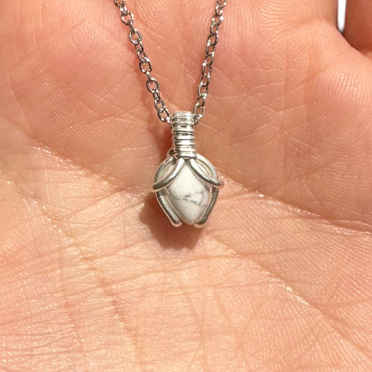 Sterling Silver | 14KT Gold Filled Mini Teardrop Howlite Wishbone Wire Wrapped Pendant