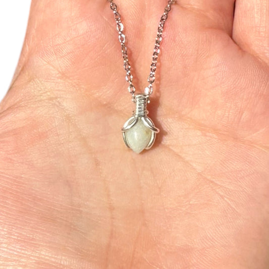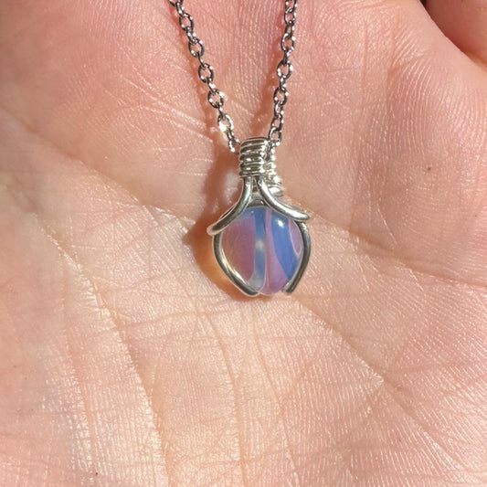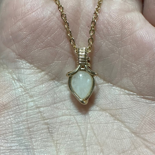 Sterling Silver | 14KT Gold Filled Mini Teardrop Opalite Wishbone Wire Wrapped Pendant