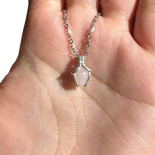 Sterling Silver | 14KT Gold Filled Mini Teardrop Rose Quartz Wire Wrapped Wishbone Pendant