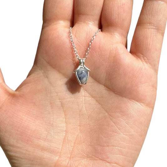 Sterling Silver | 14KT Gold Filled Mini Teardrop Sodalite Wire Wrapped Wishbone Pendant