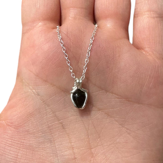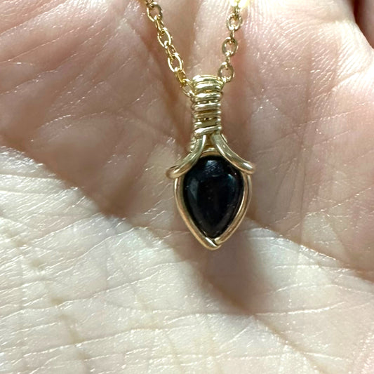 Sterling Silver | 14KT Gold Filled Mini Teardrop Onyx Wire Wrapped Wishbone 2.0 Pendant
