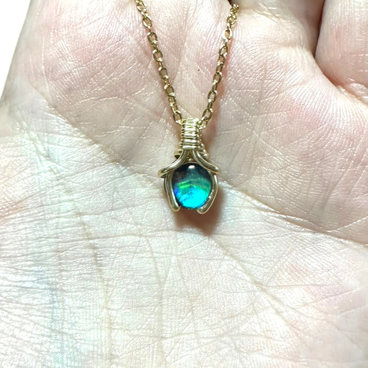 Sterling Silver | 14KT Gold Filled Mini Abalone Shell Wishbone Wire Wrapped Pendant