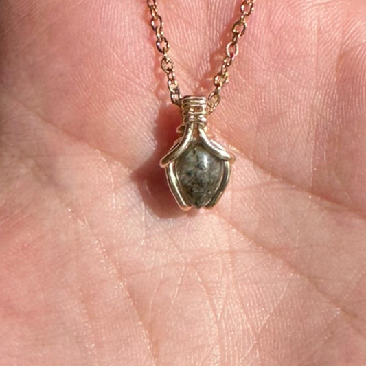 Sterling Silver | 14KT Gold Filled Mini Teardrop Labradorite Wire Wrapped Wishbone 2.0 Pendant