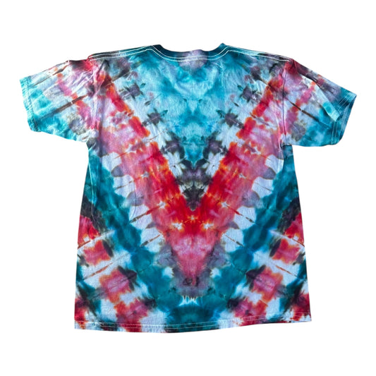 Youth Large Red Gray and Teal V Pleated Ice Dye Tie Dye T-ShirtRegular price $17.00 USDRegular priceUnit price / per-