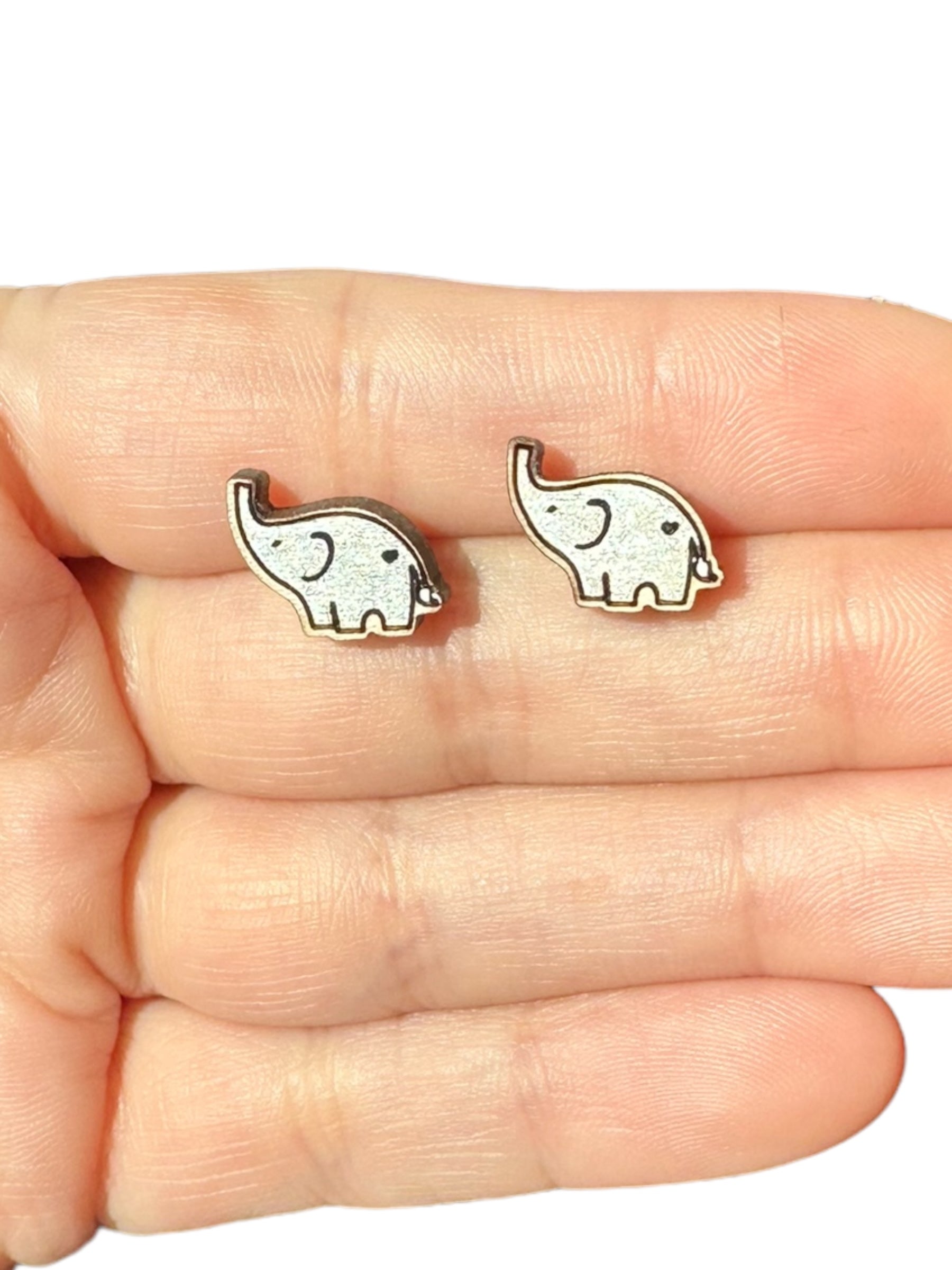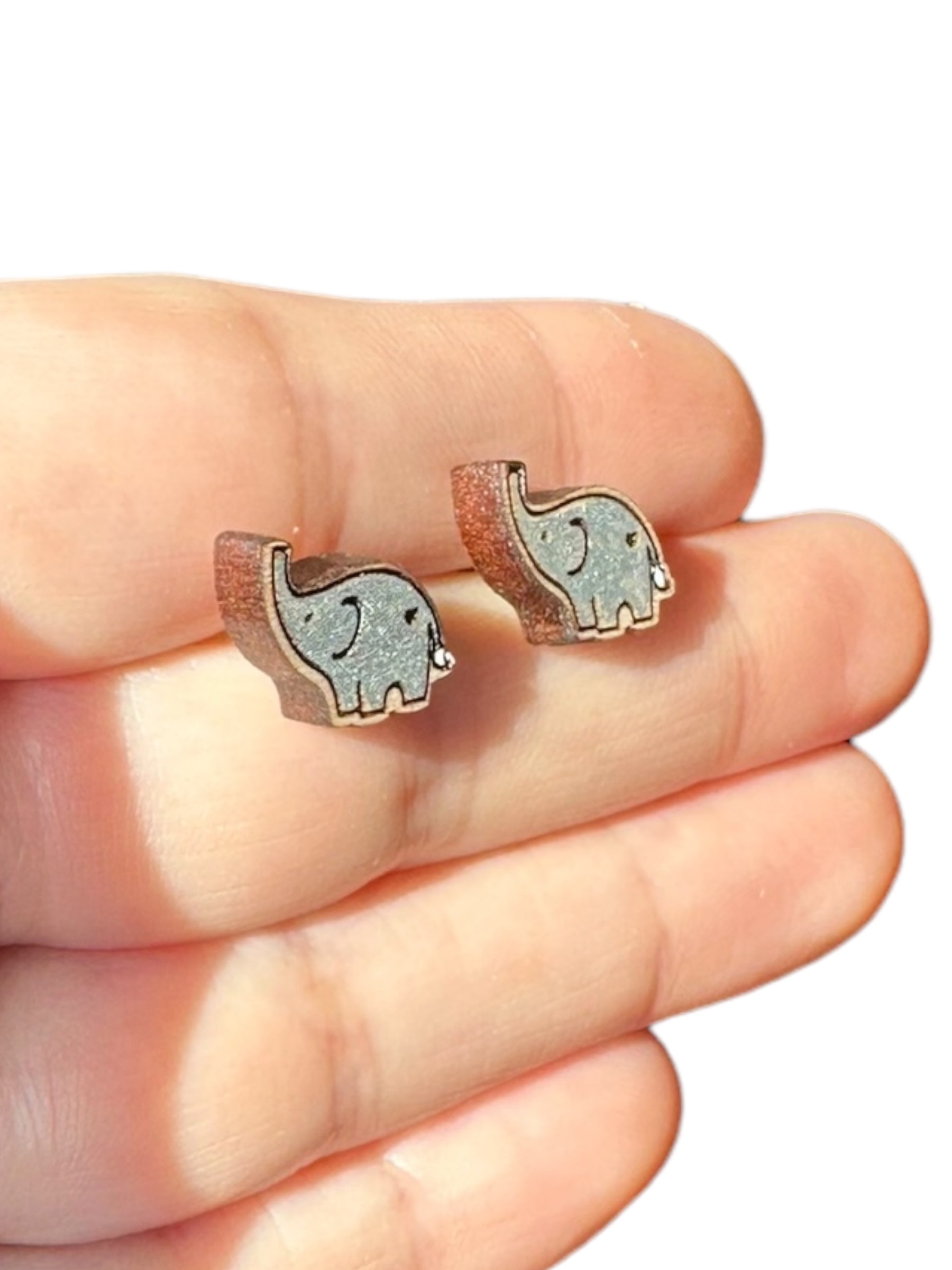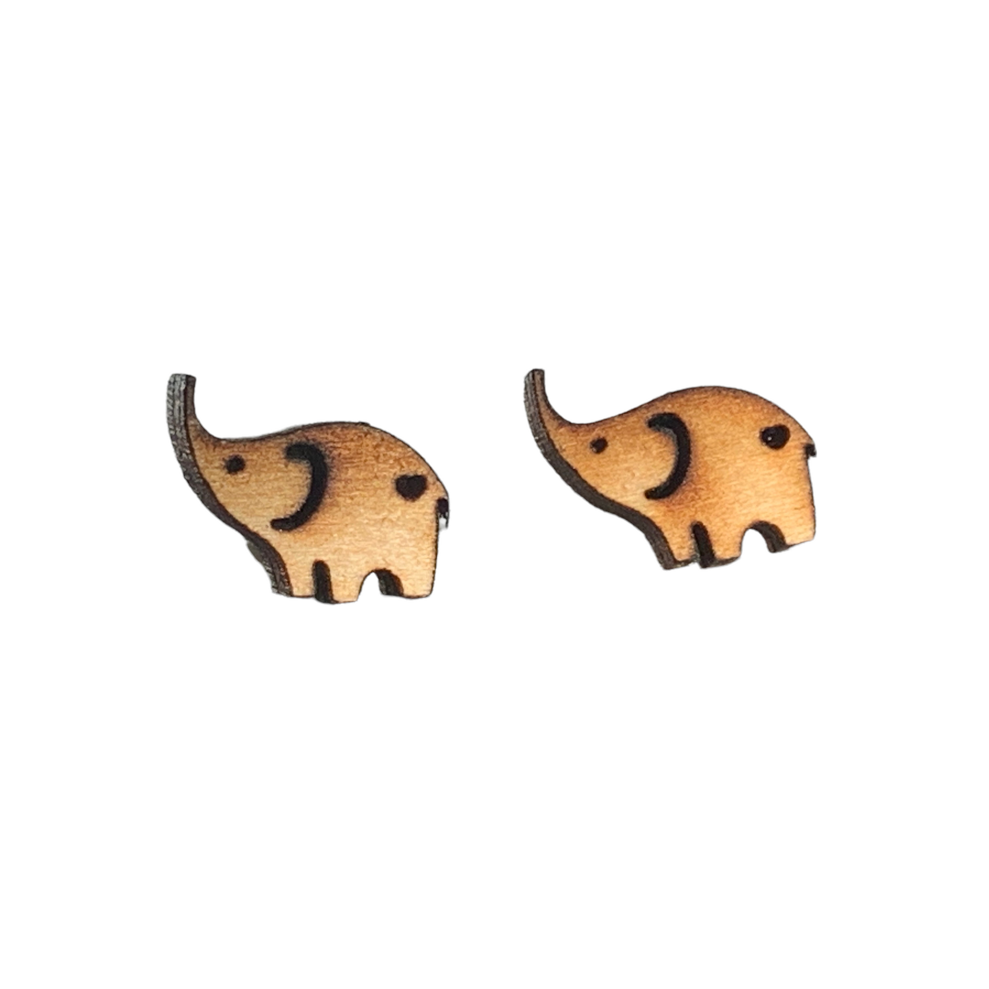 Hypoallergenic Elephant Laser Engraved Wood Earrings