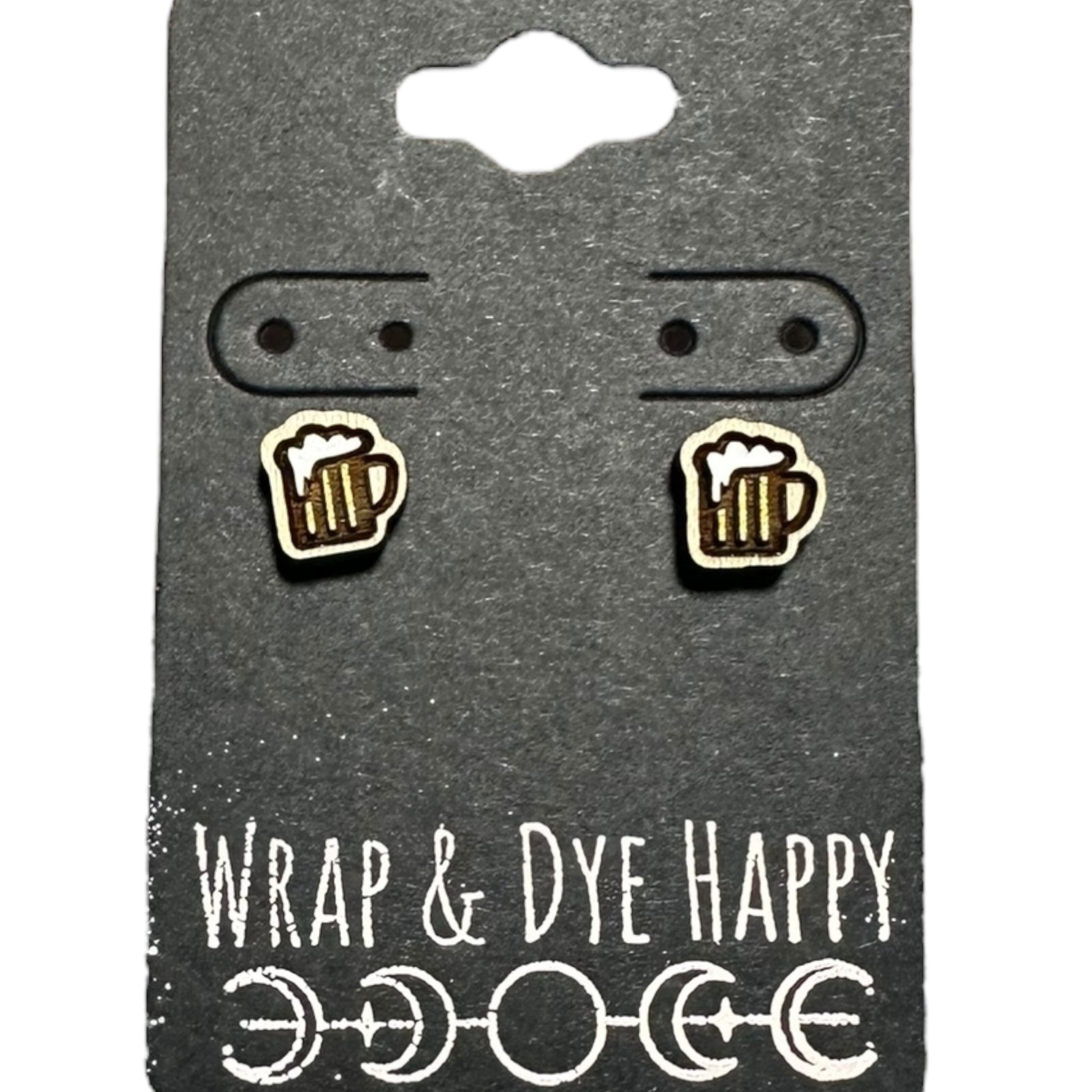 Hypoallergenic Laser Engraved Painted Beer Mug Wood Stud Earrings