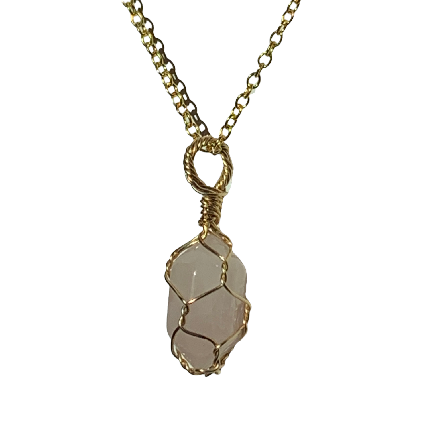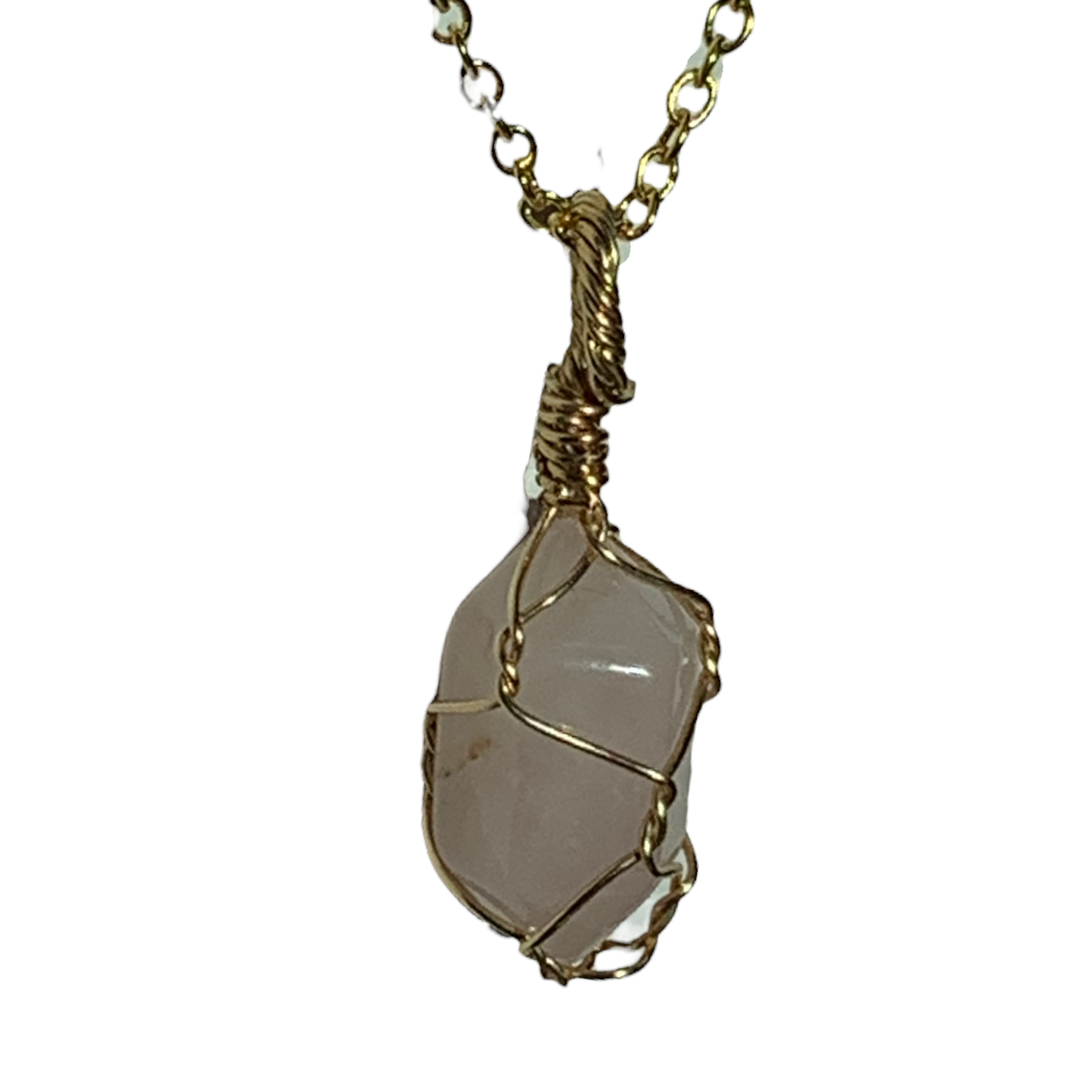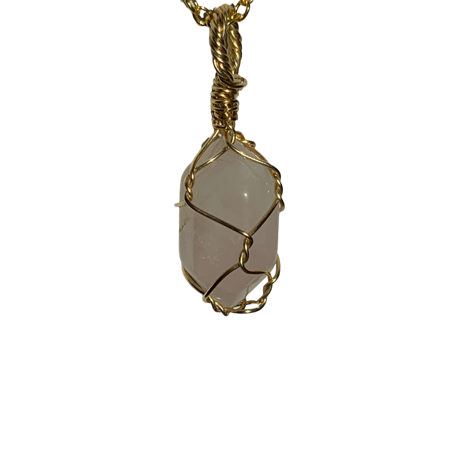 This Rose Quartz Crystal is wrapped in 14KT gold filled wire to make it into a wearable piece of art! This beautiful stone matched with the gold