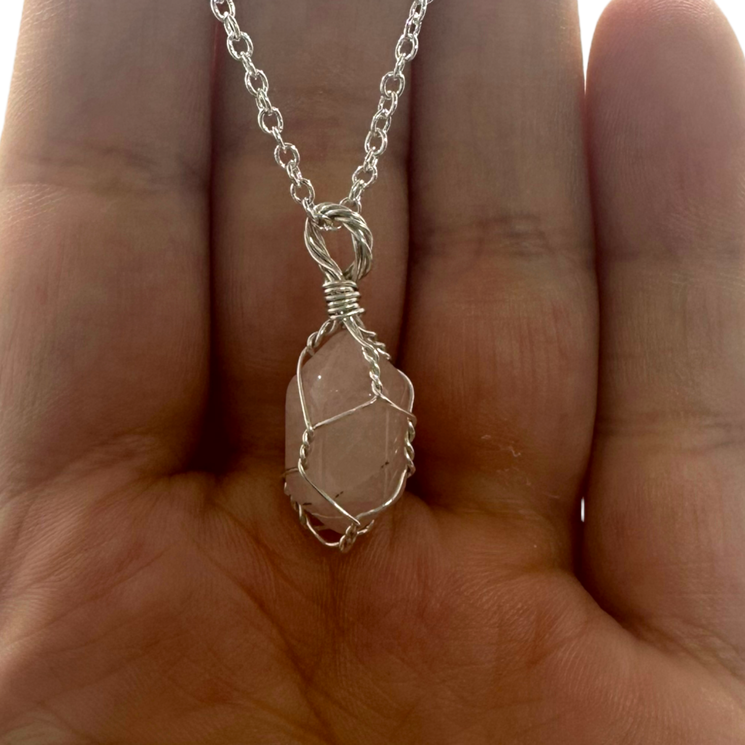 Mini Sterling Silver | 14KT Gold Filled Rose Quartz Wire Cage Pendant