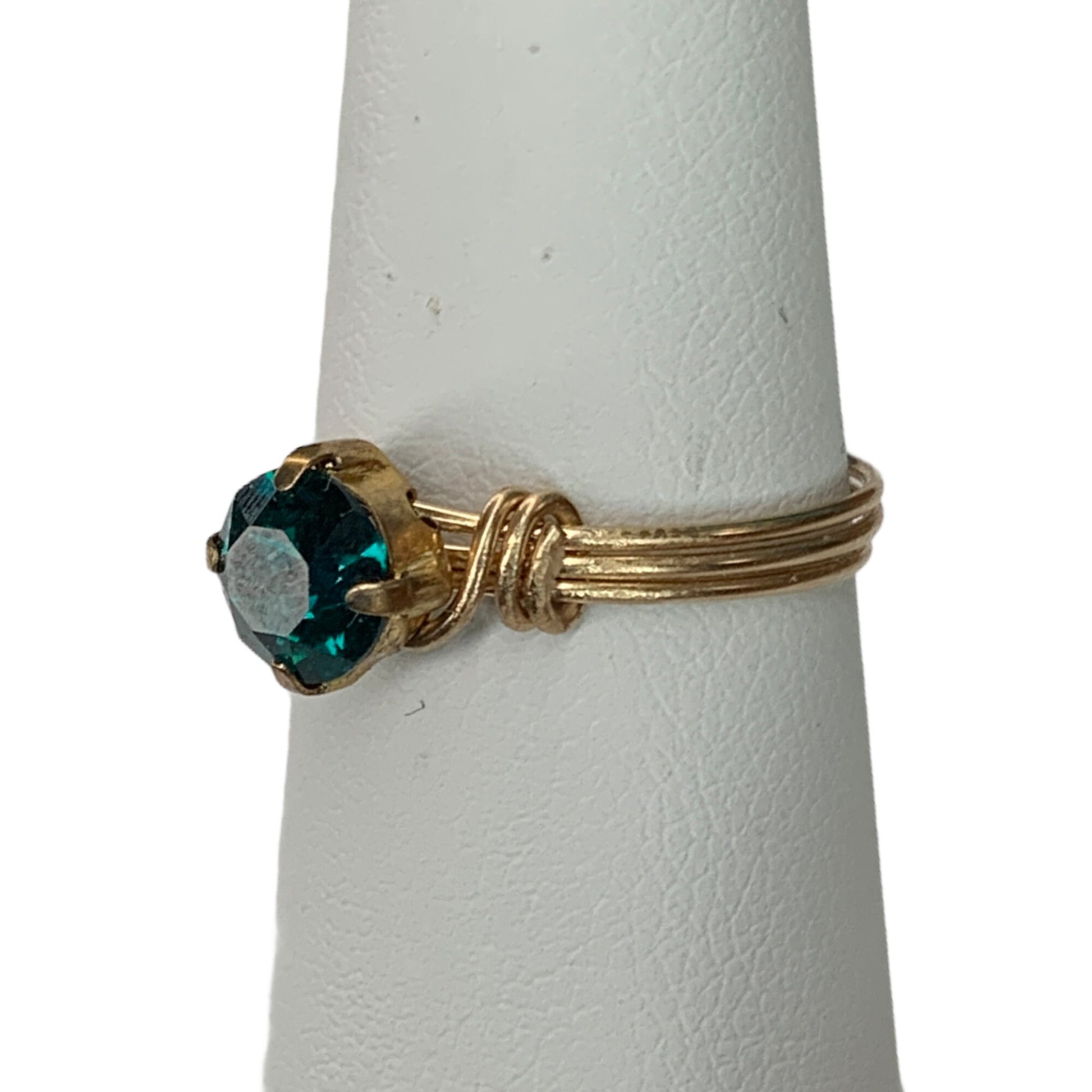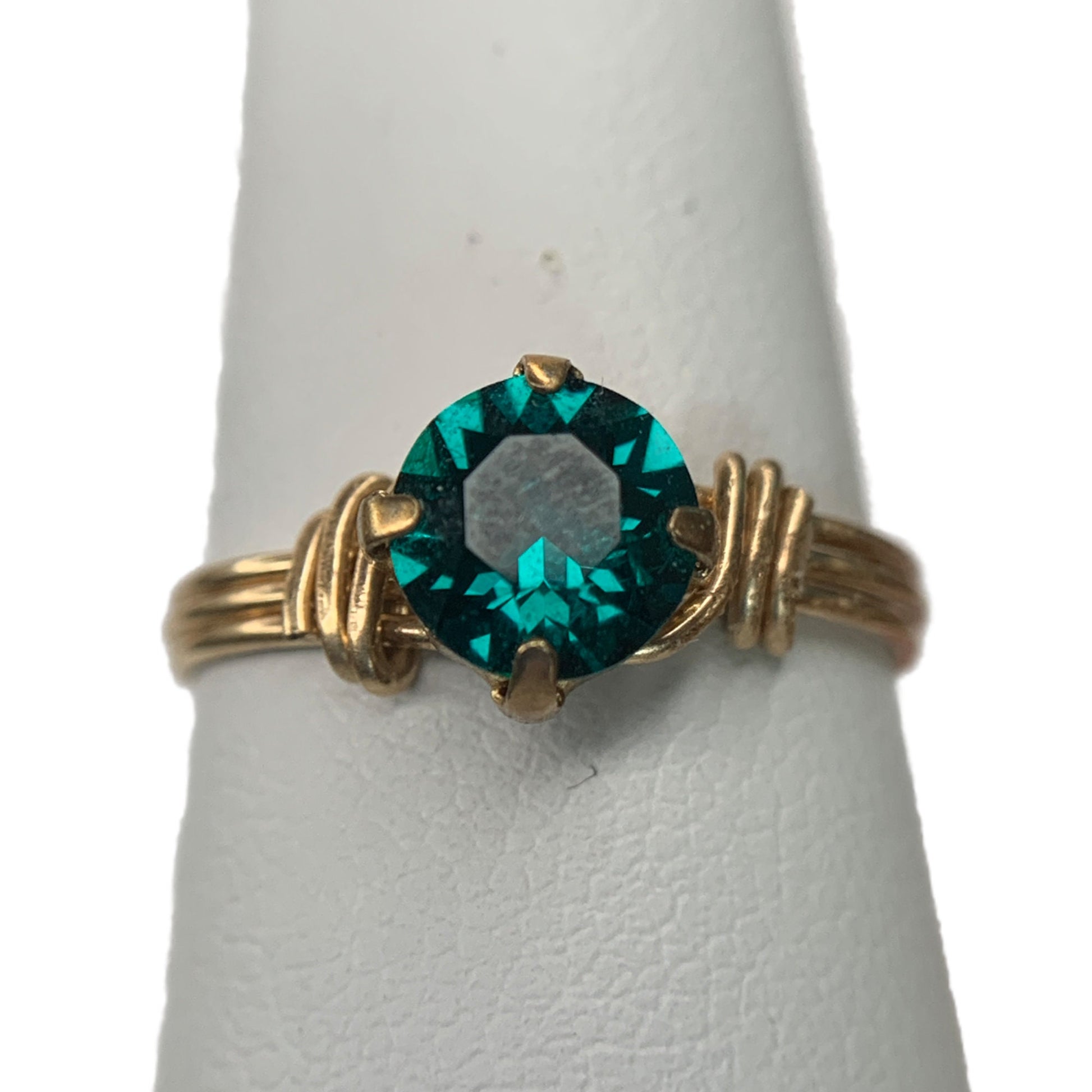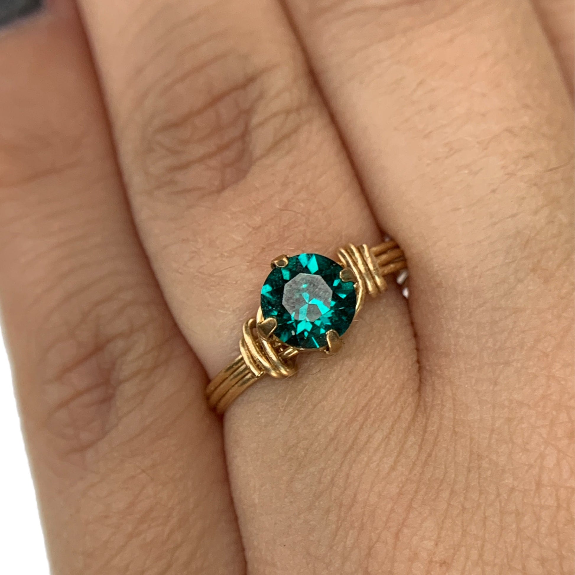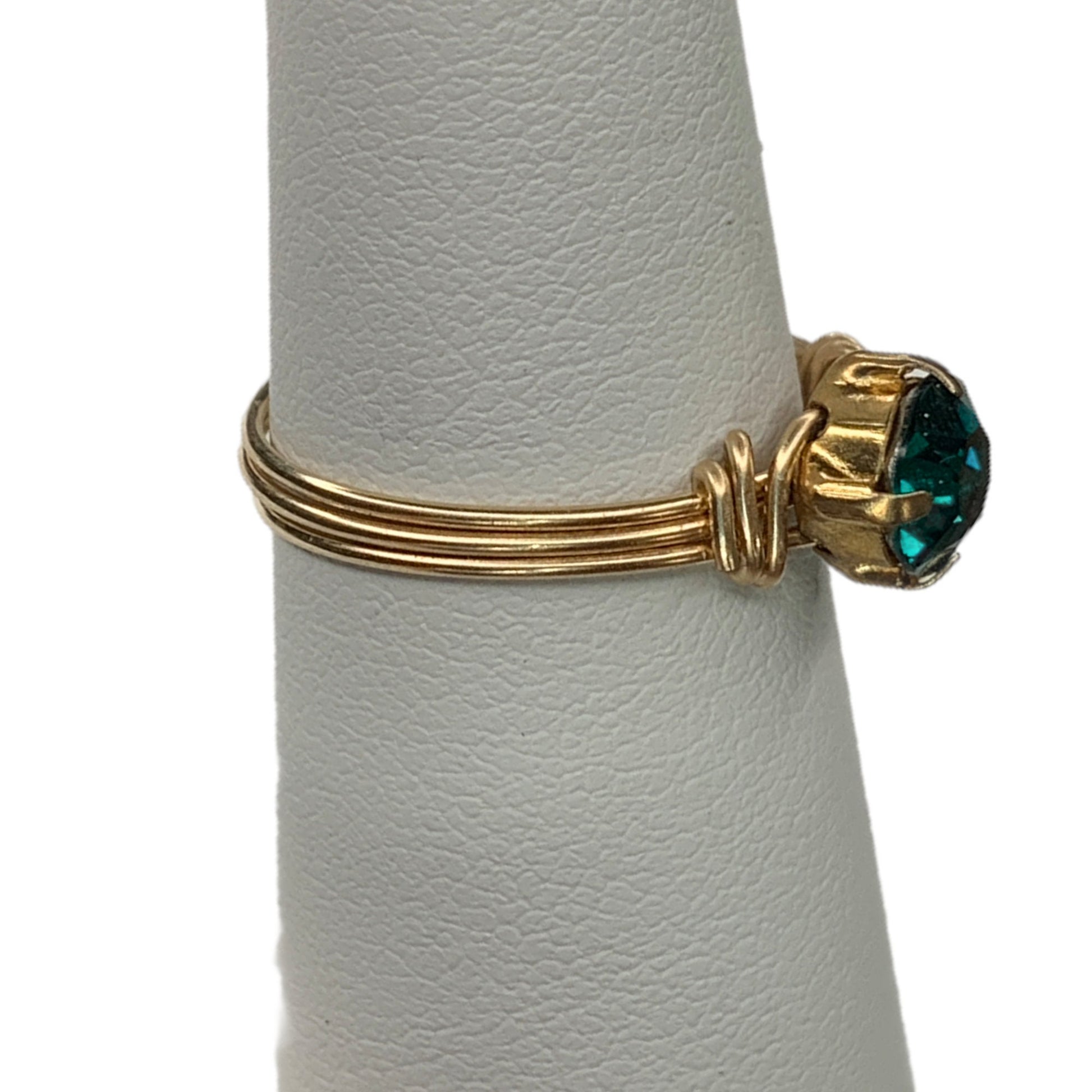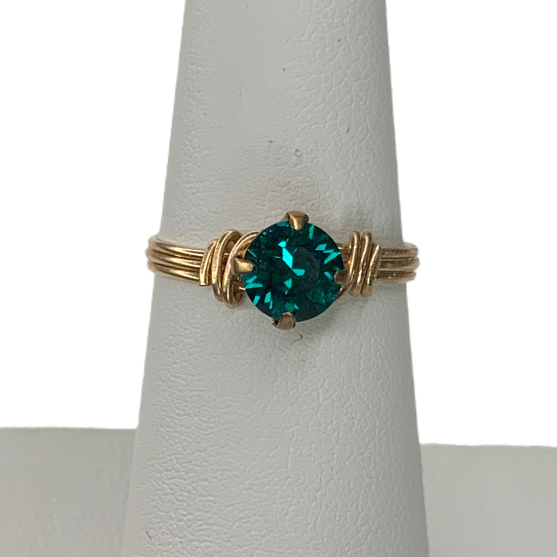 Sterling Silver | 14KT Rolled Gold 6MM Emerald Green Crystal Wire Ring