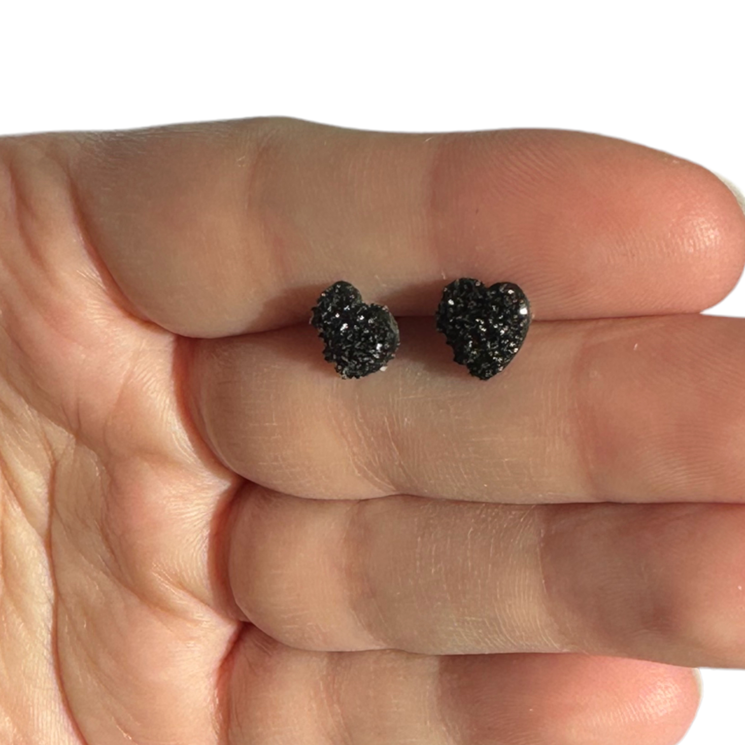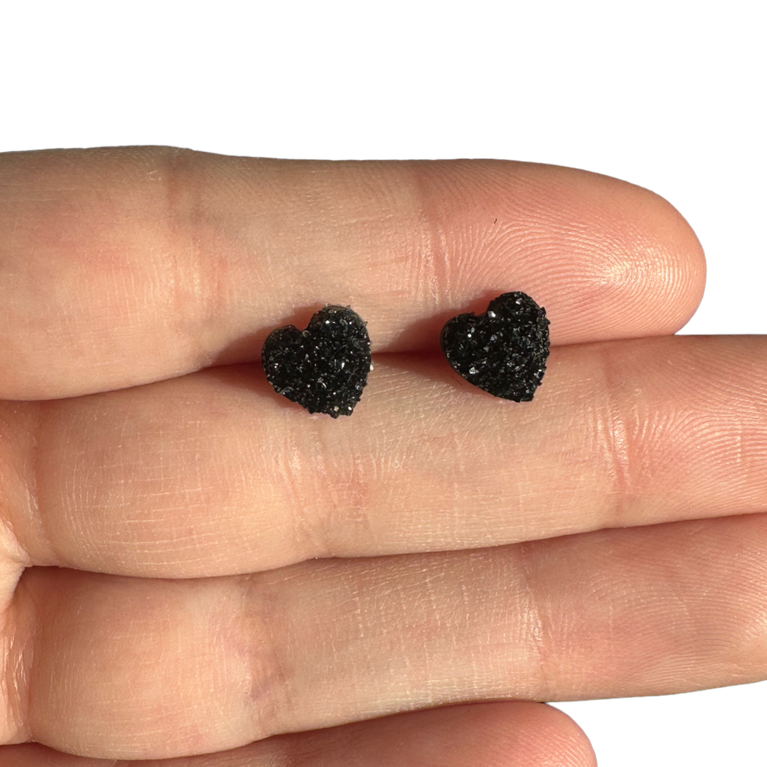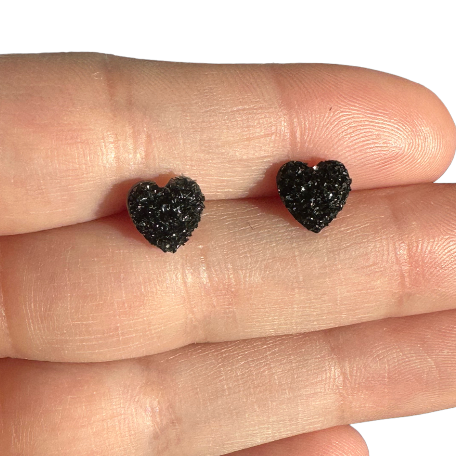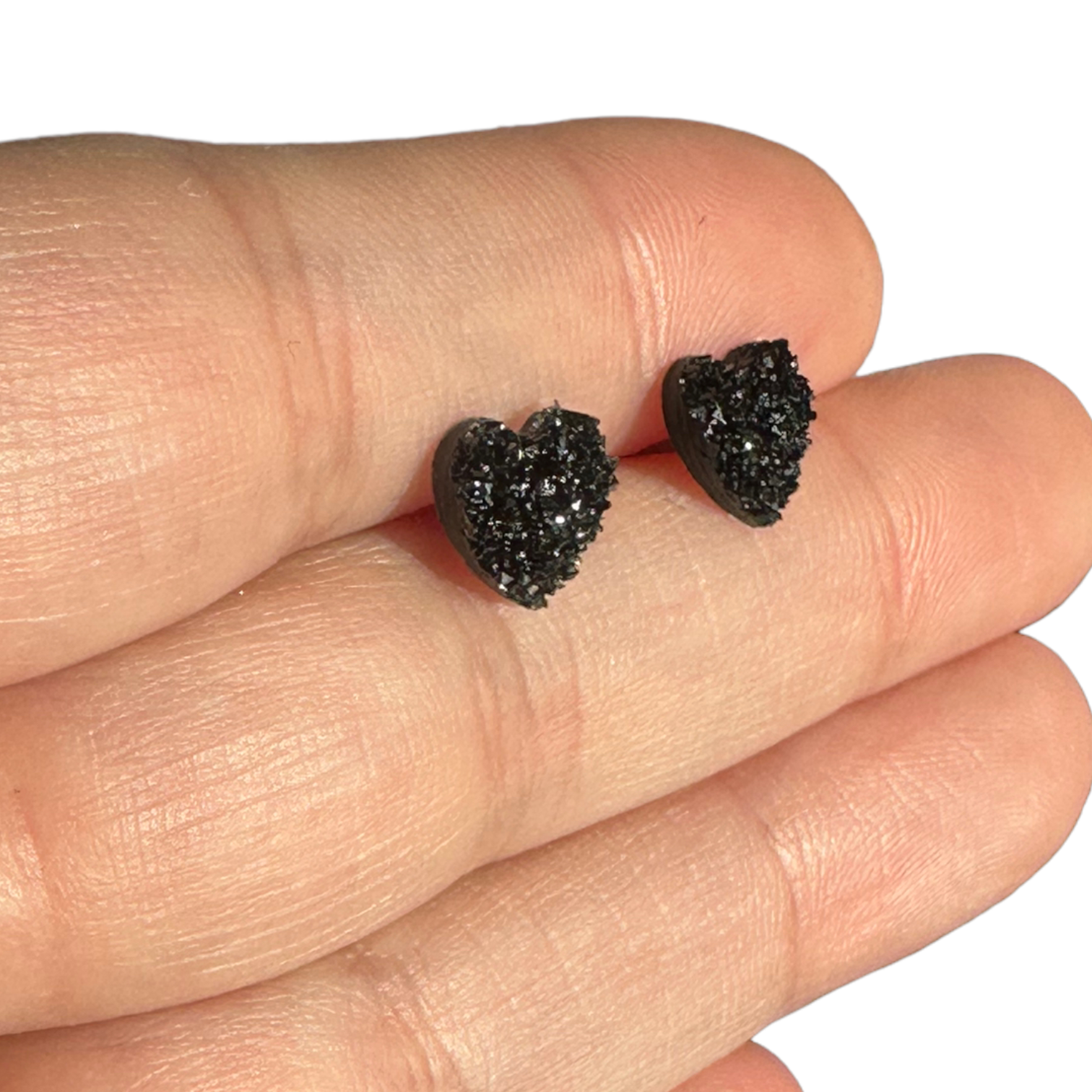 8MM Hypoallergenic Black Heart Druzy Earring Studs