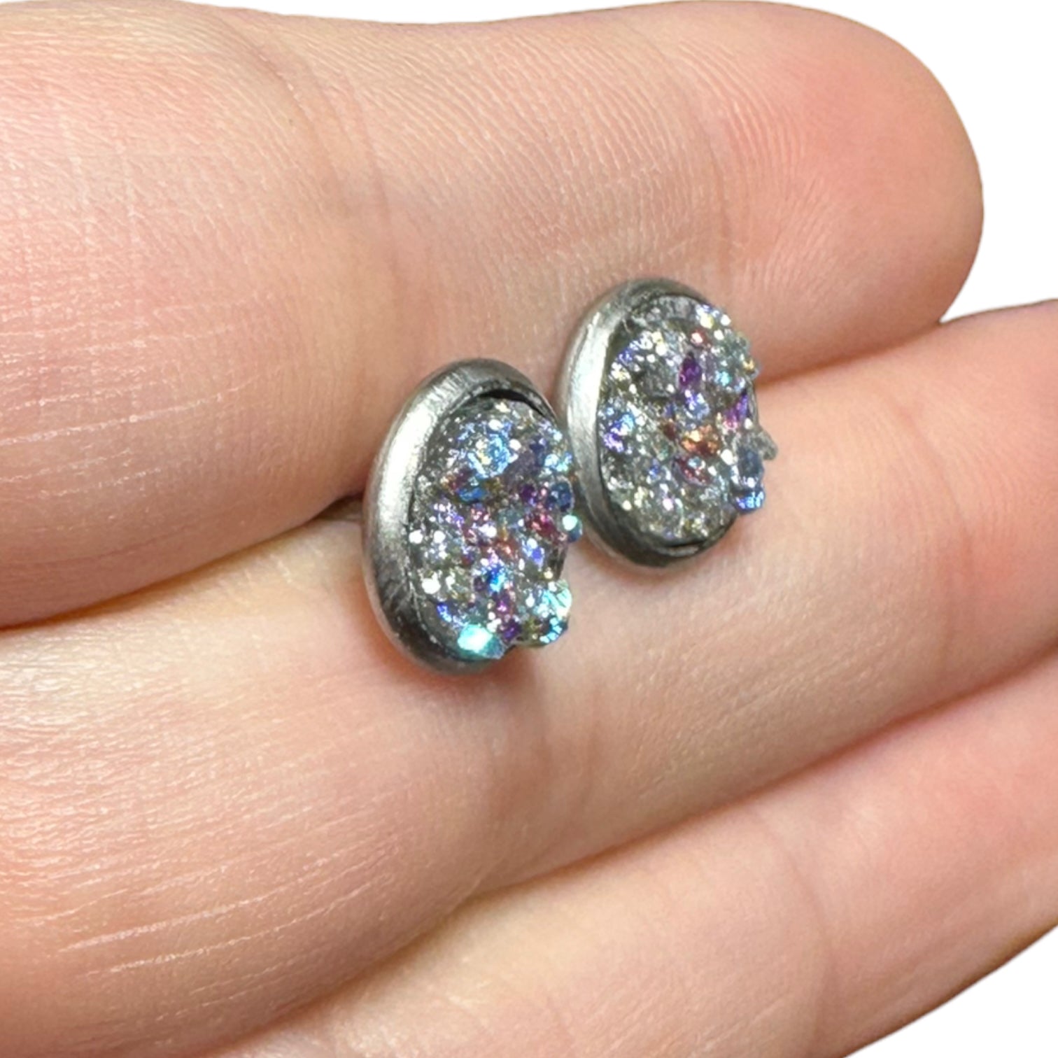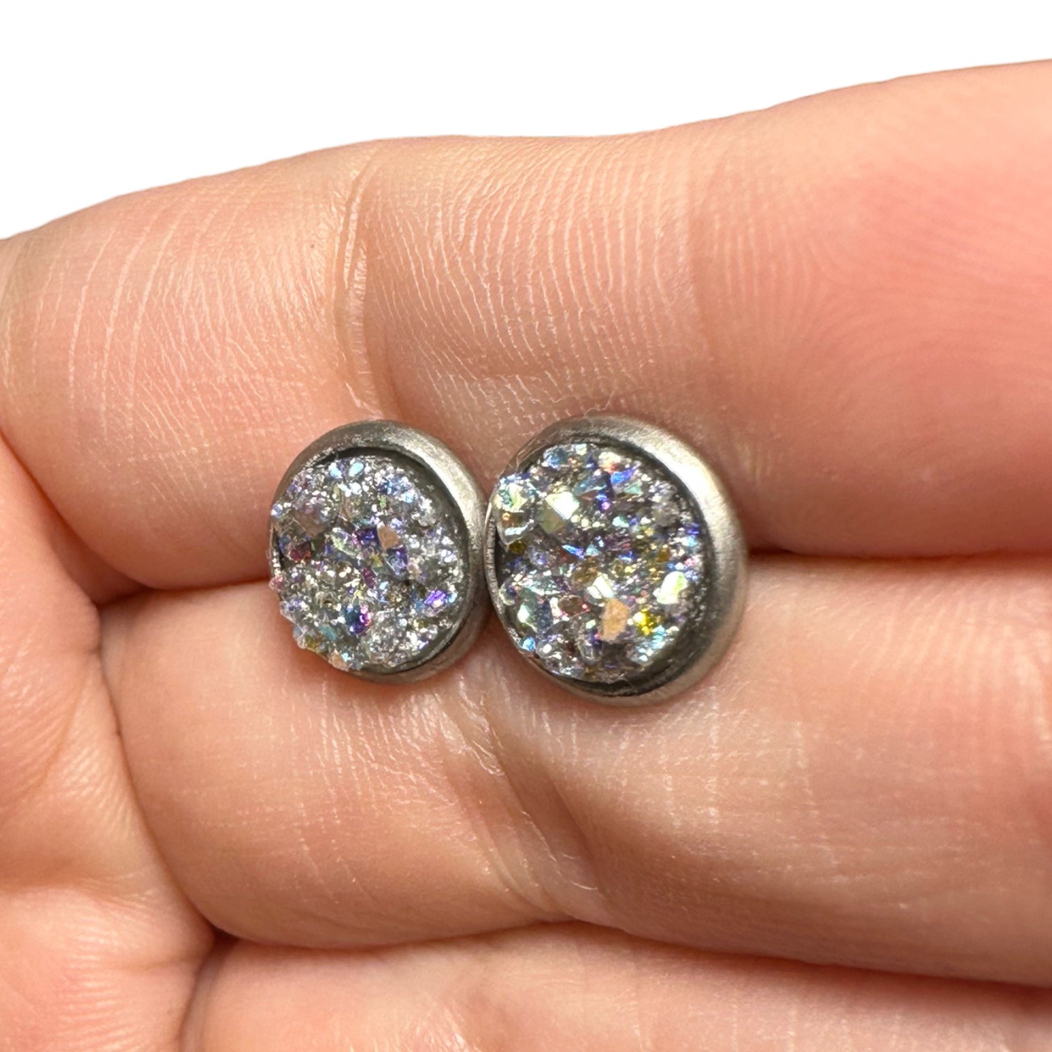 8MM Hypoallergenic Silver Sparkle Druzy Earring Studs