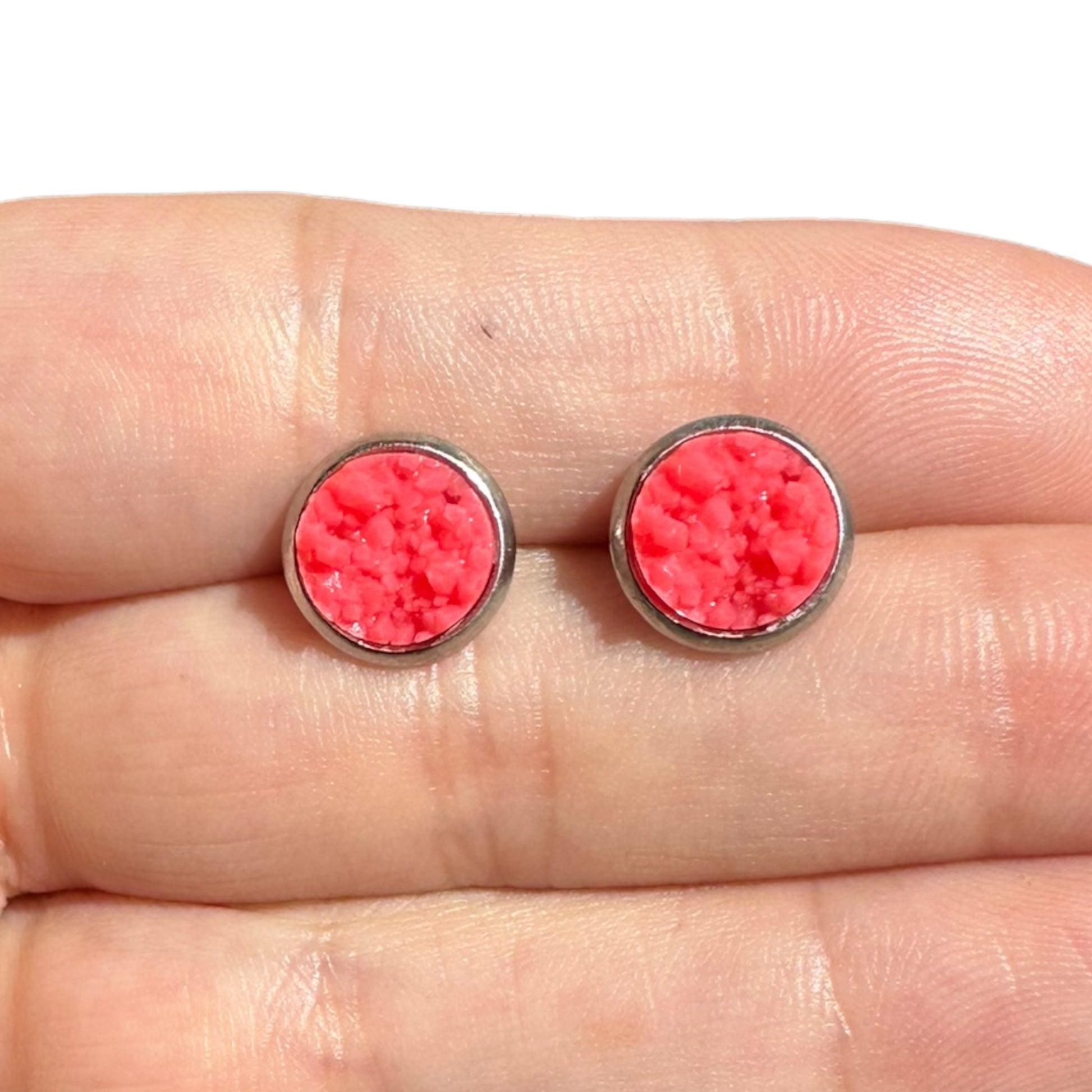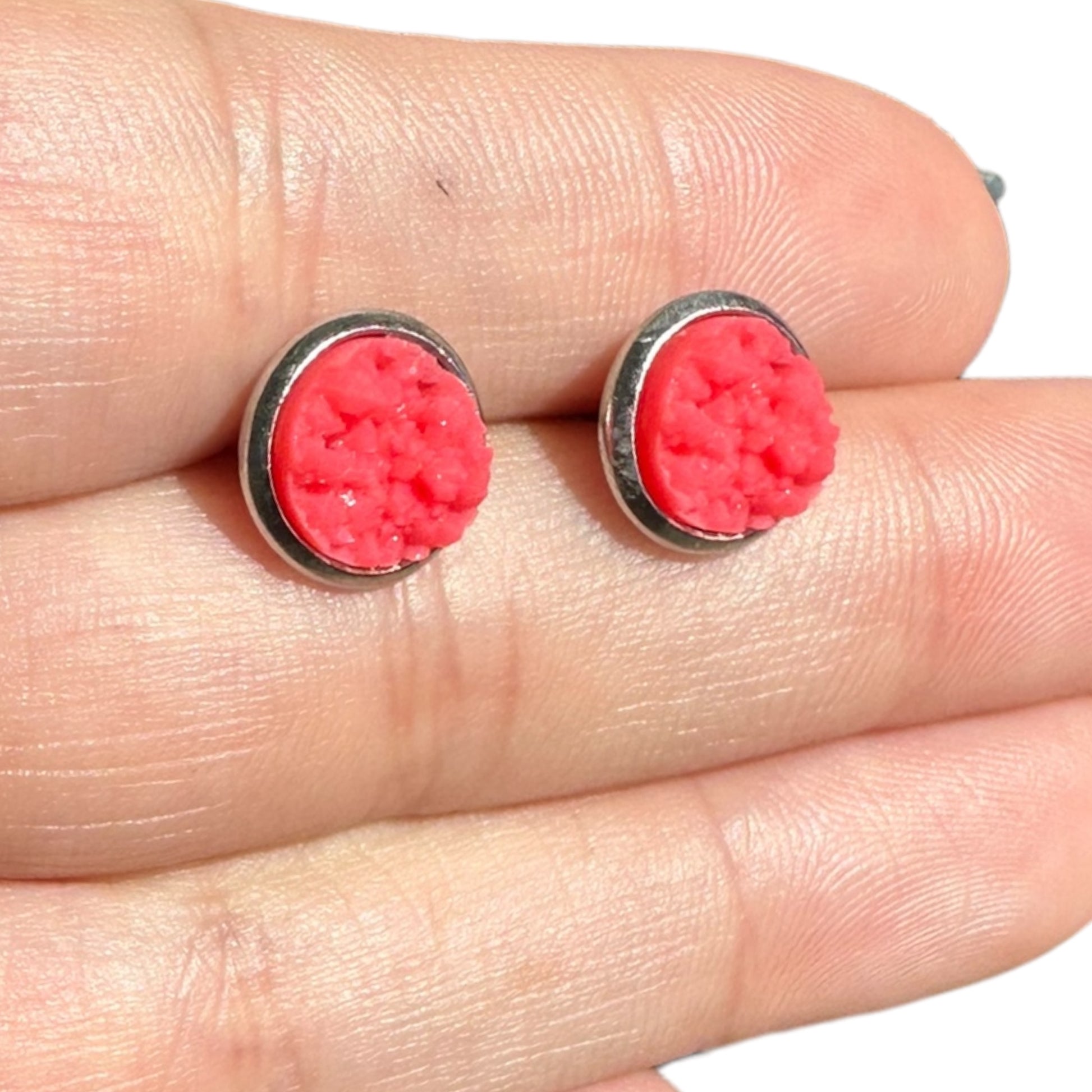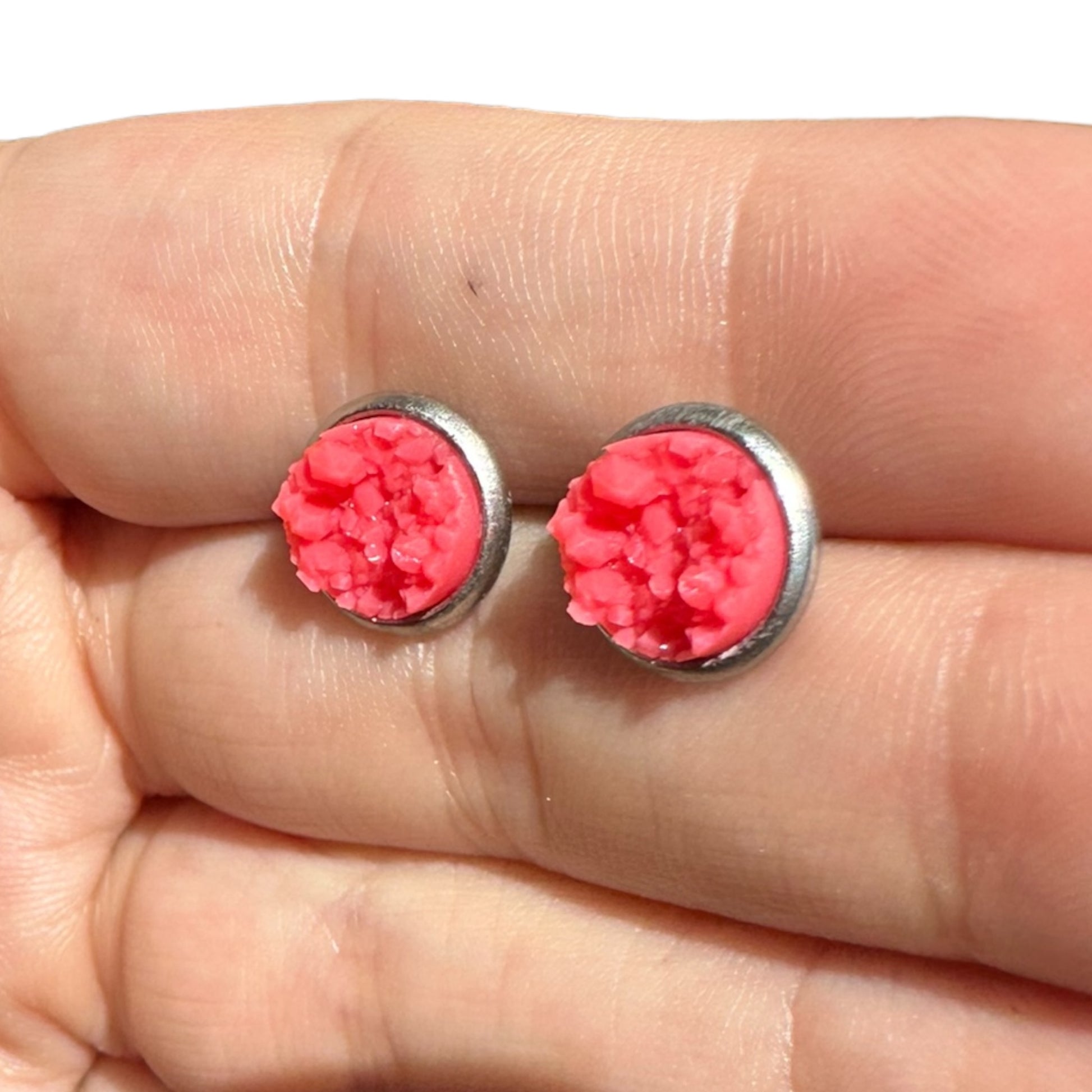 8MM Hypoallergenic Coral Faux Druzy Earring Studs
