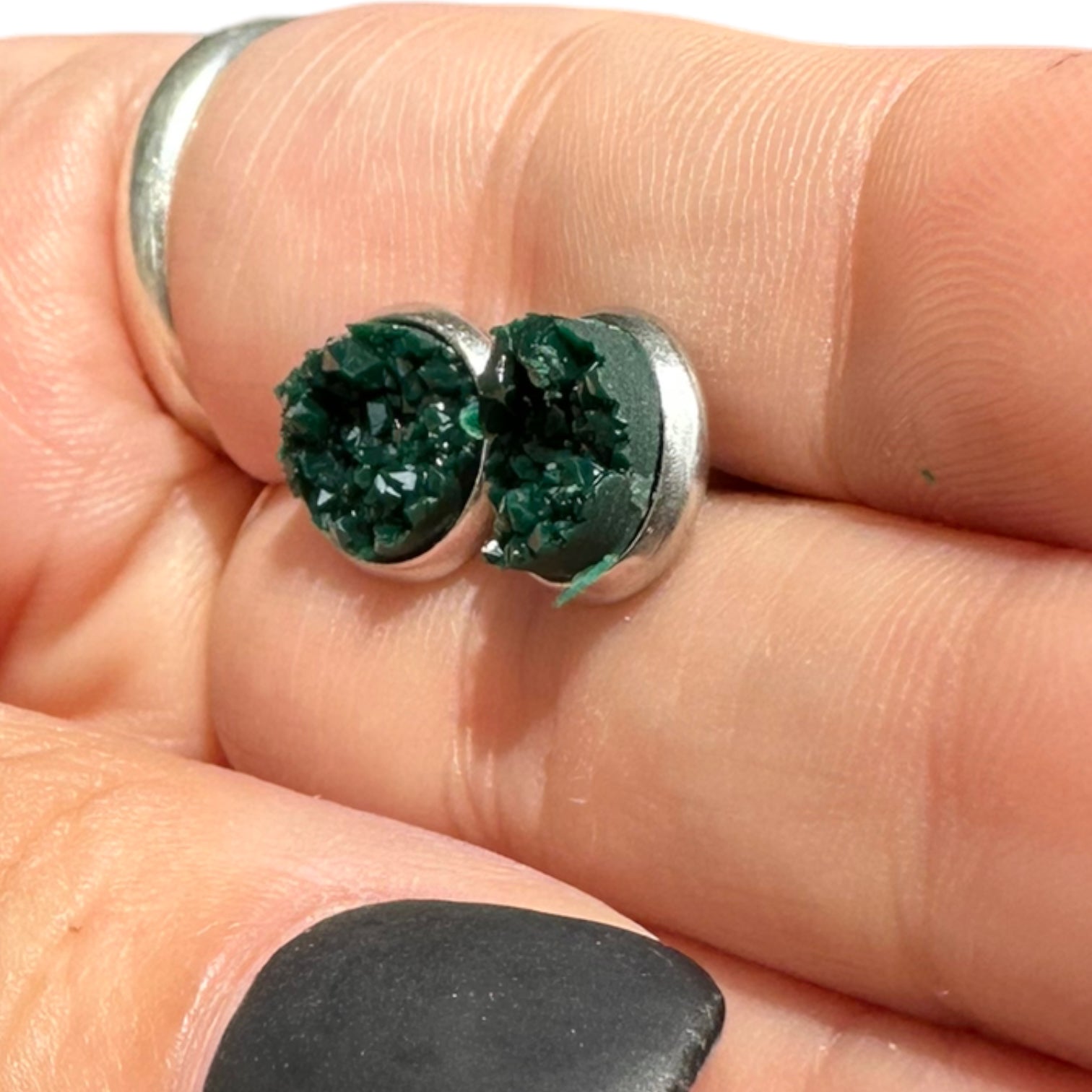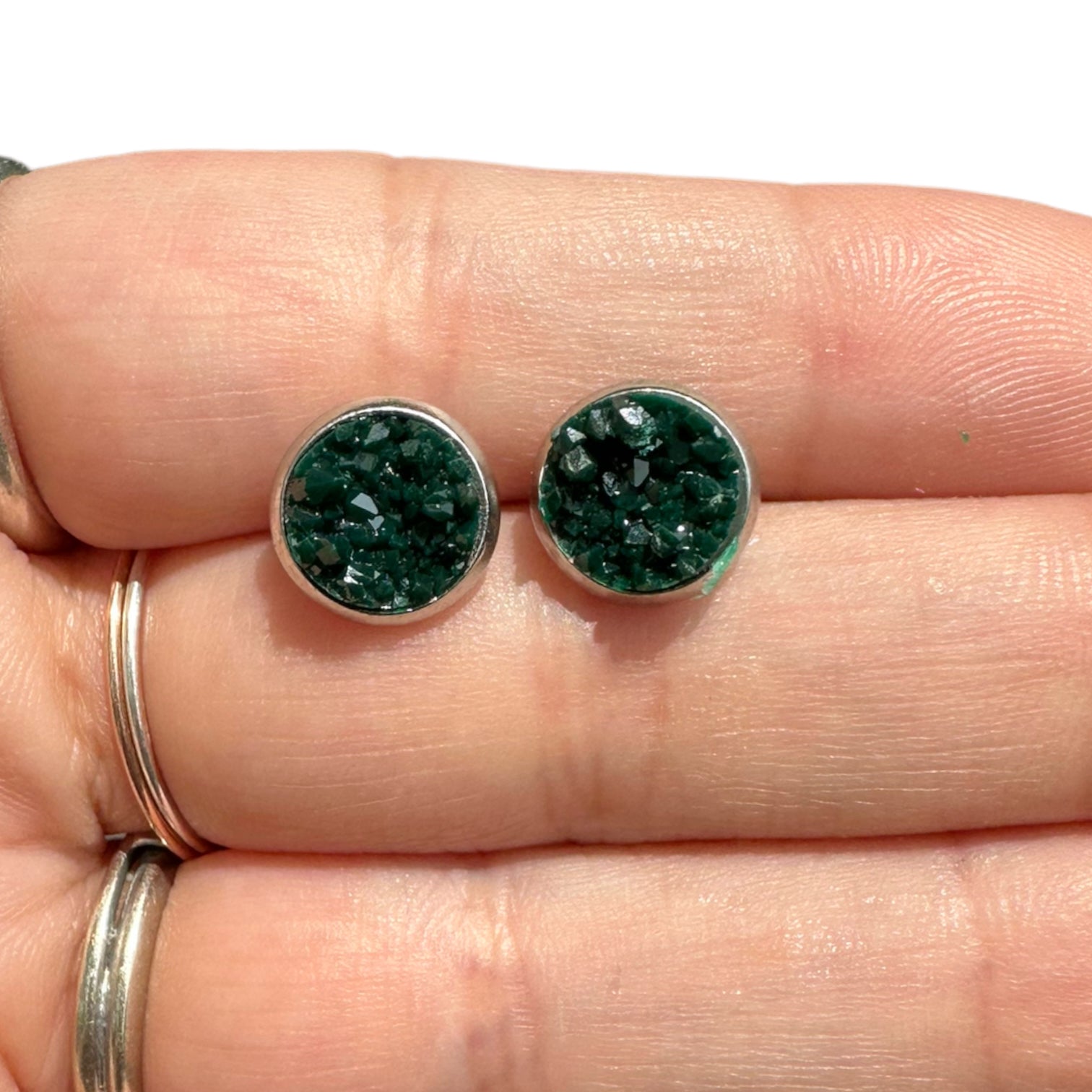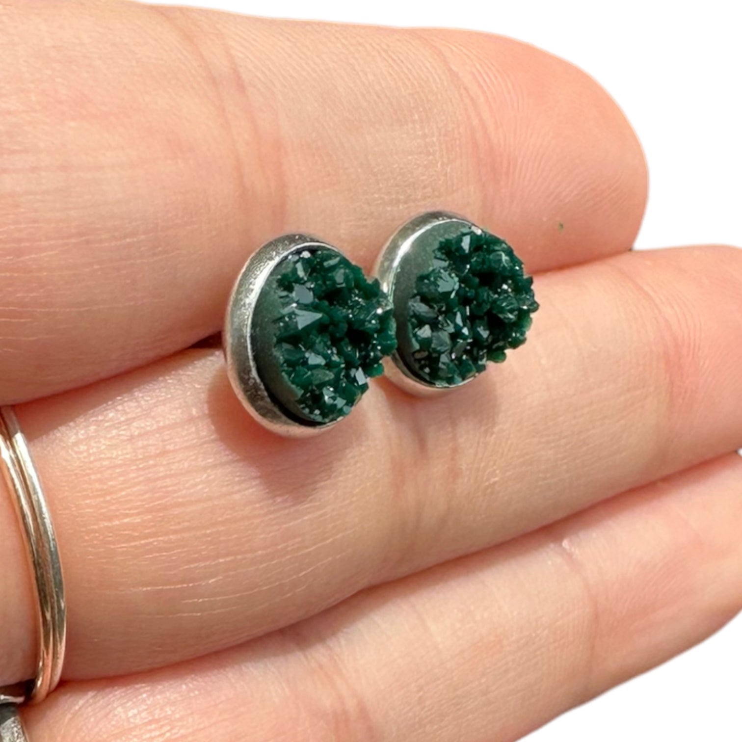 8MM Hypoallergenic Forest Green Sparkle Faux Druzy Earring Studs