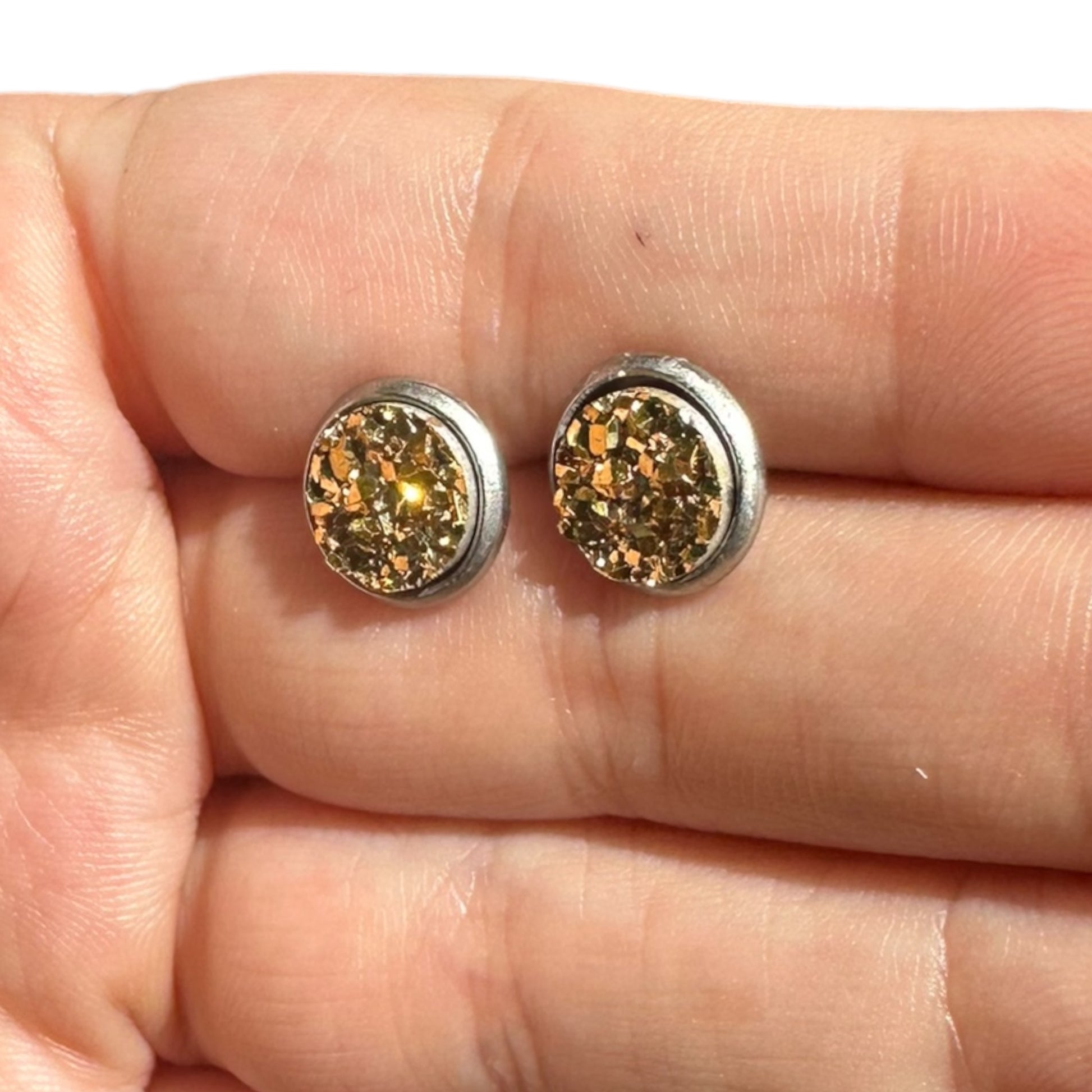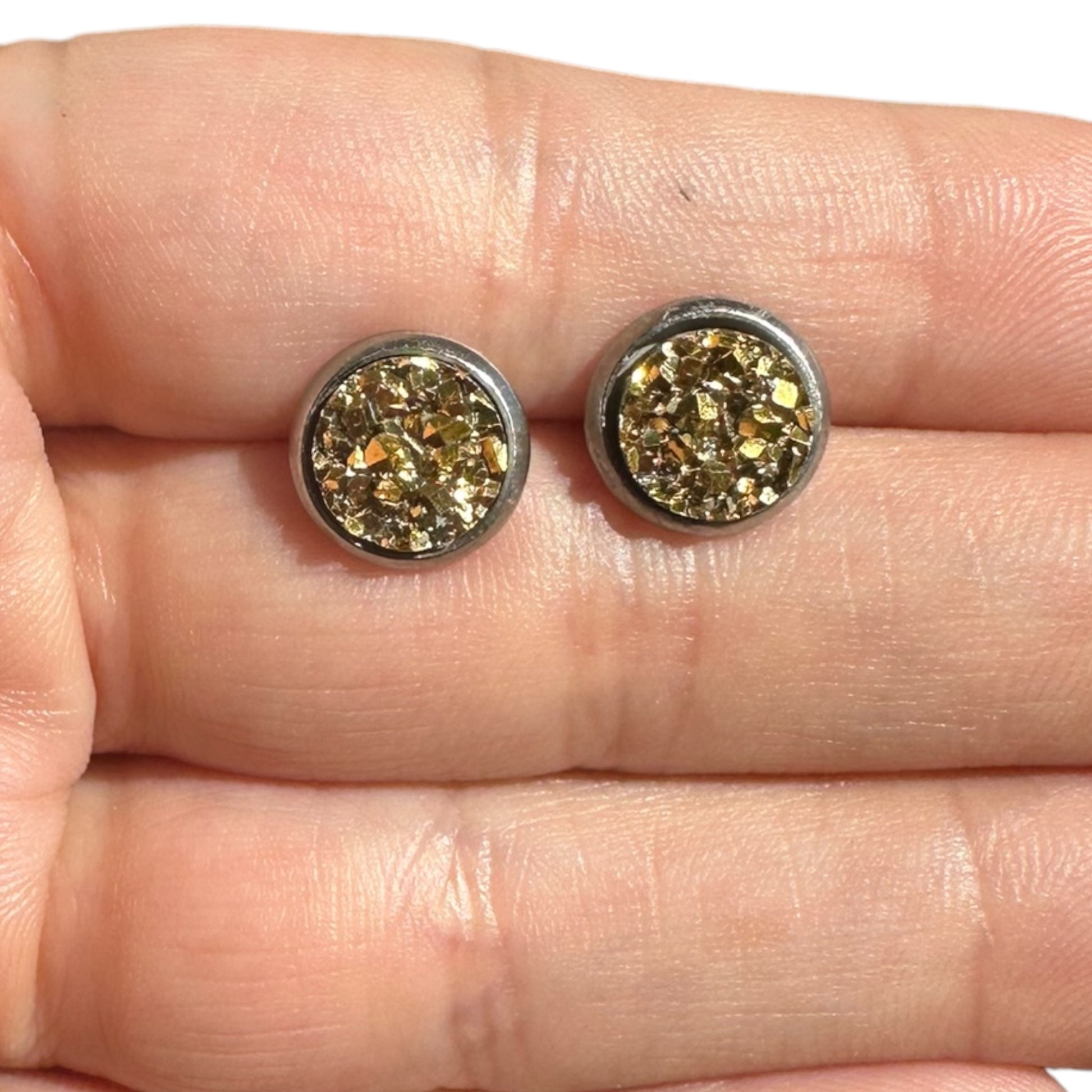 8MM Hypoallergenic Gold Faux Druzy Earring Studs