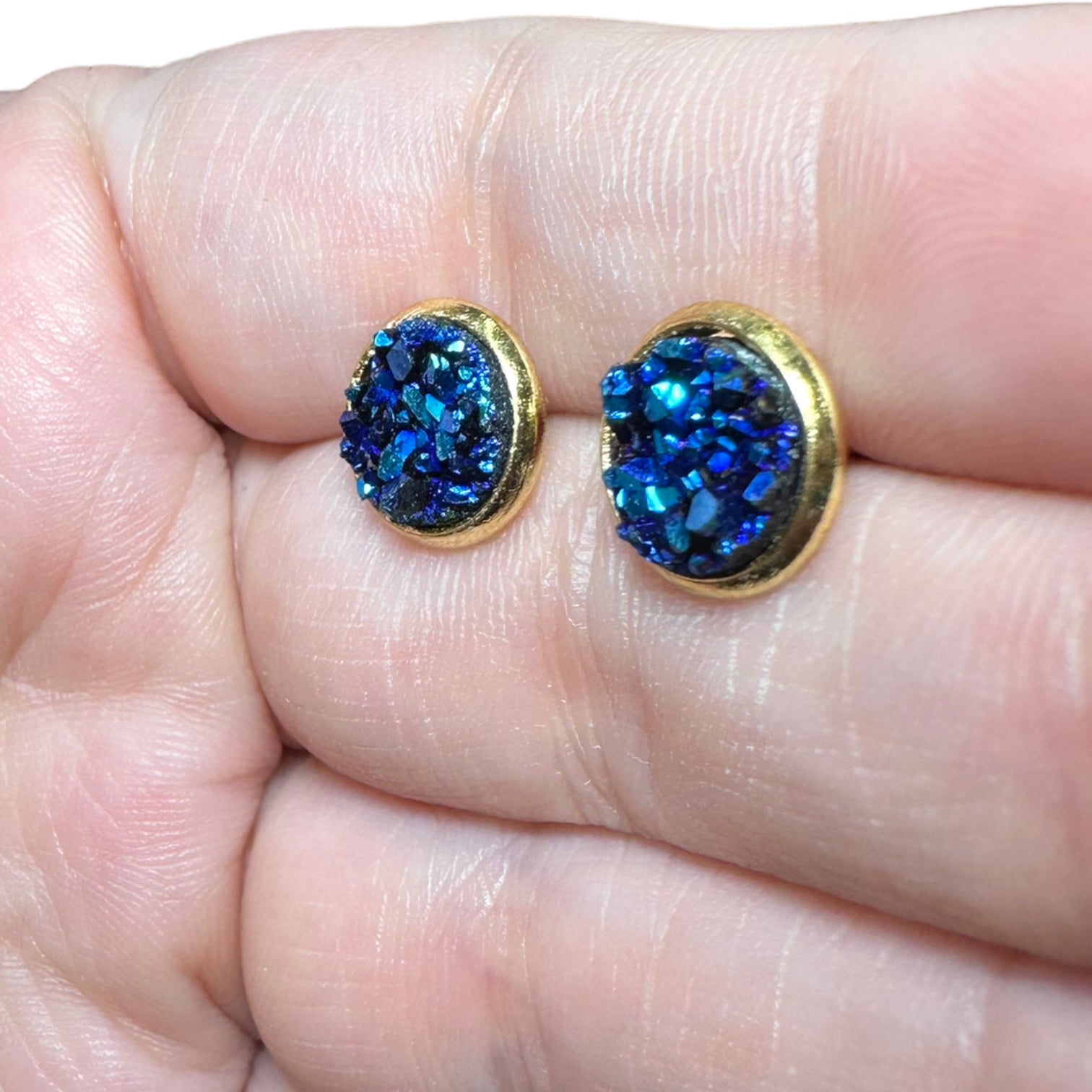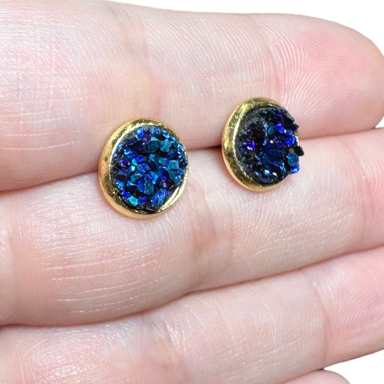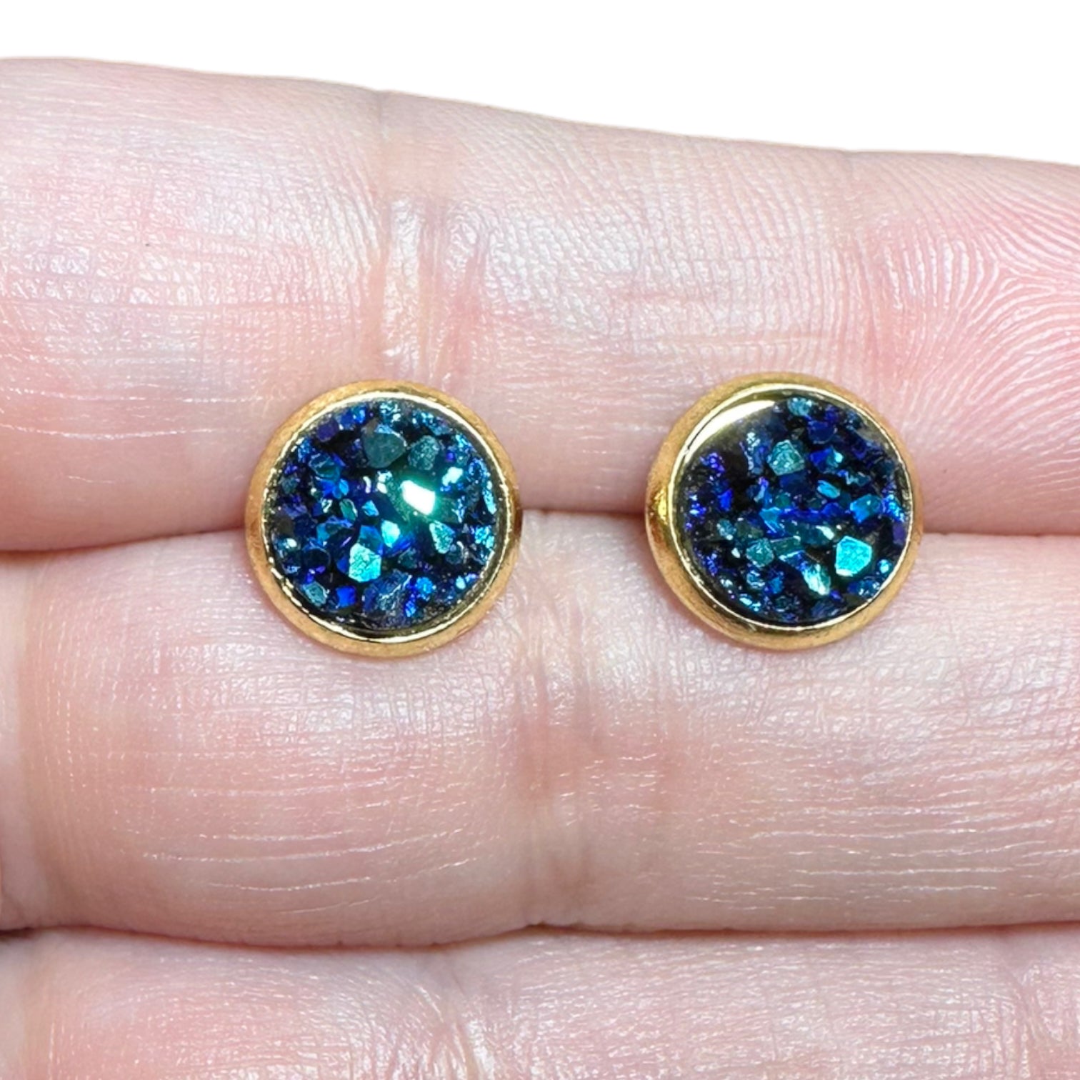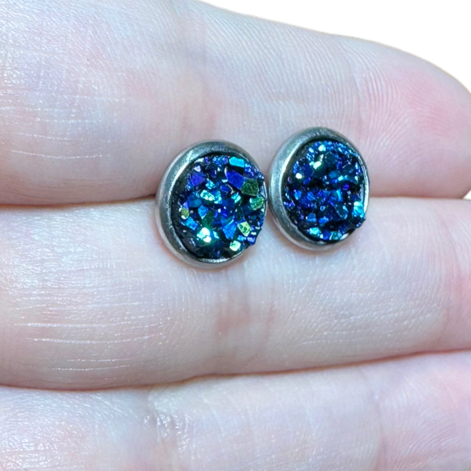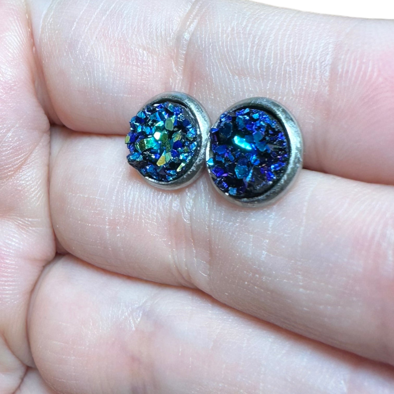 8MM Hypoallergenic Oil Spill Druzy Earring Studs