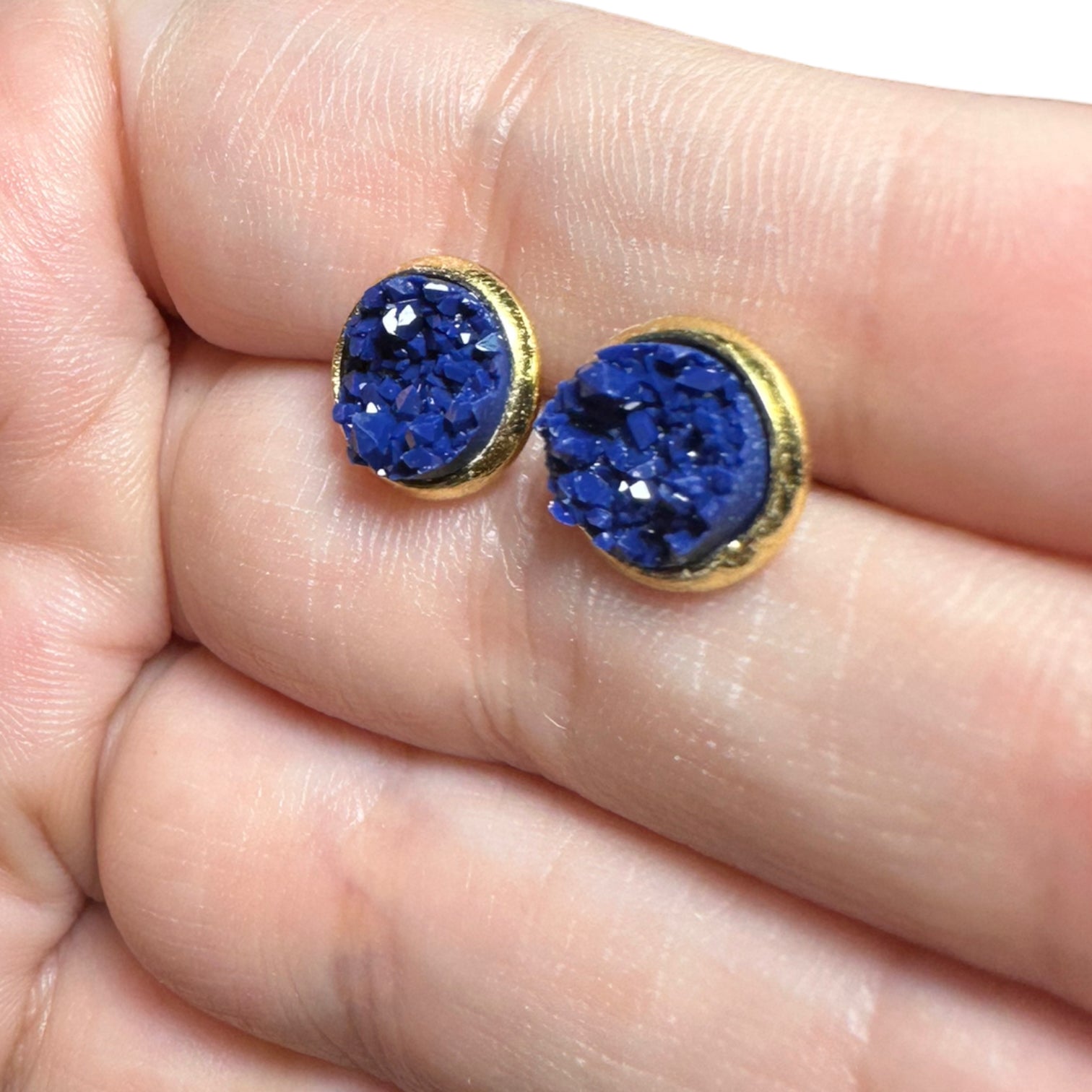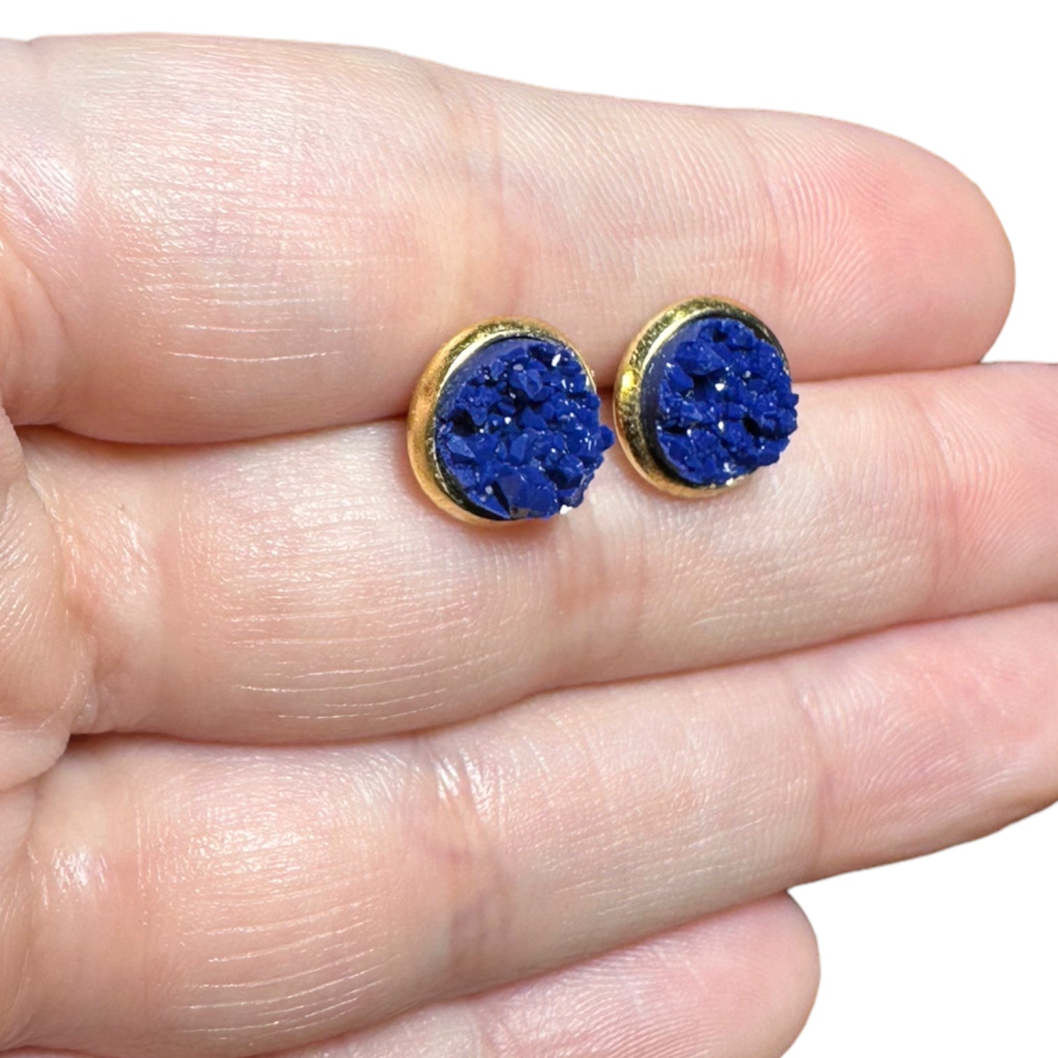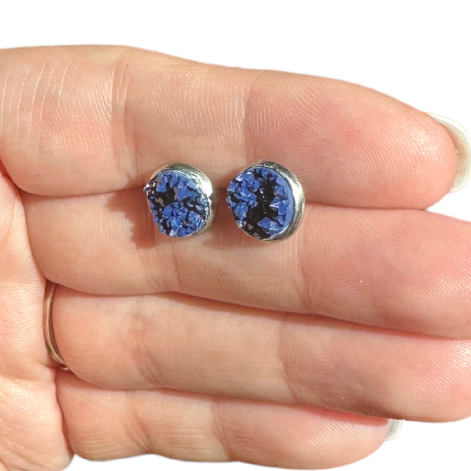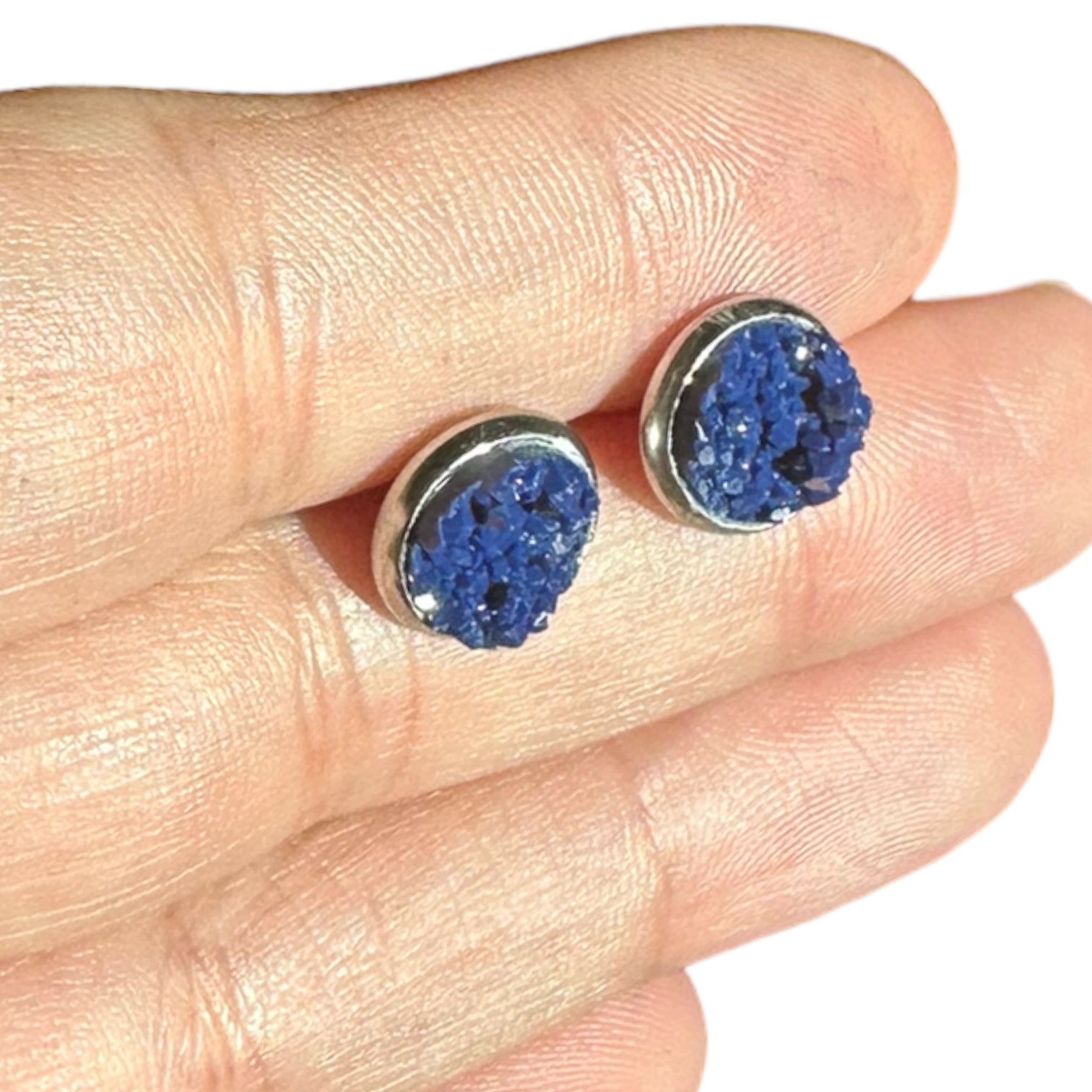 8MM Hypoallergenic Midnight Blue Druzy Earring Studs