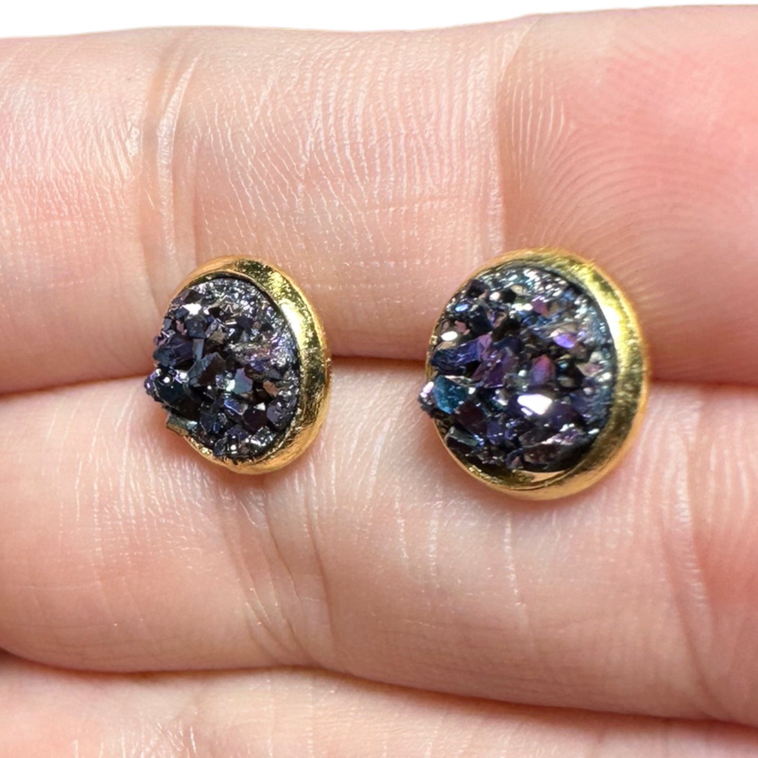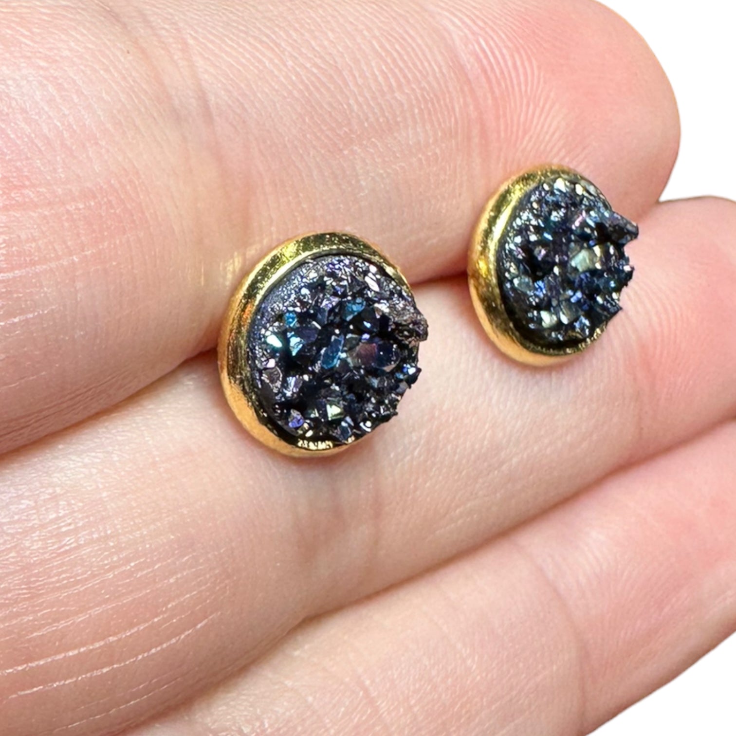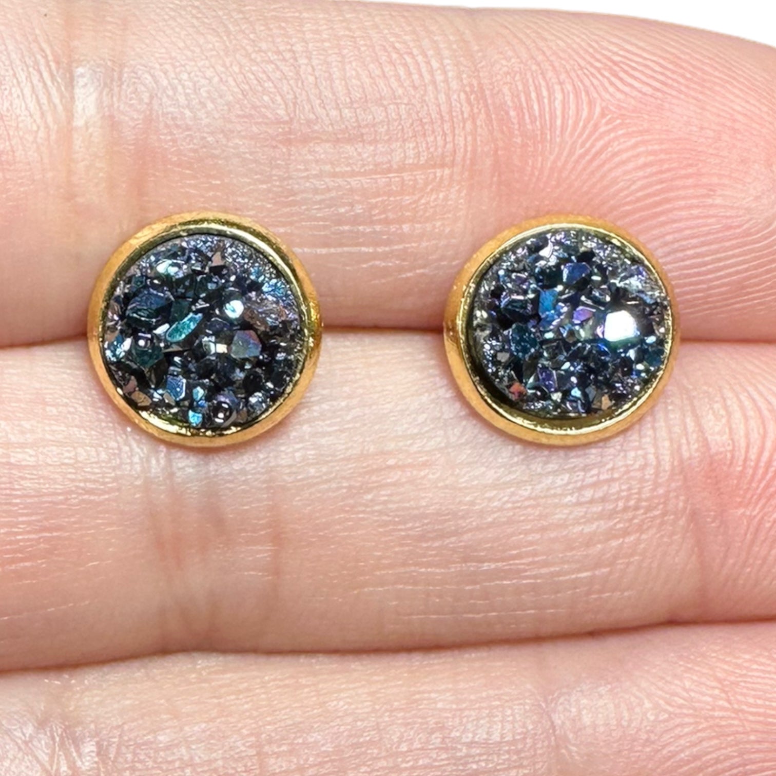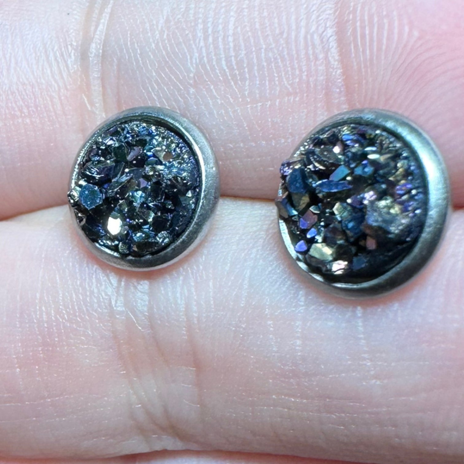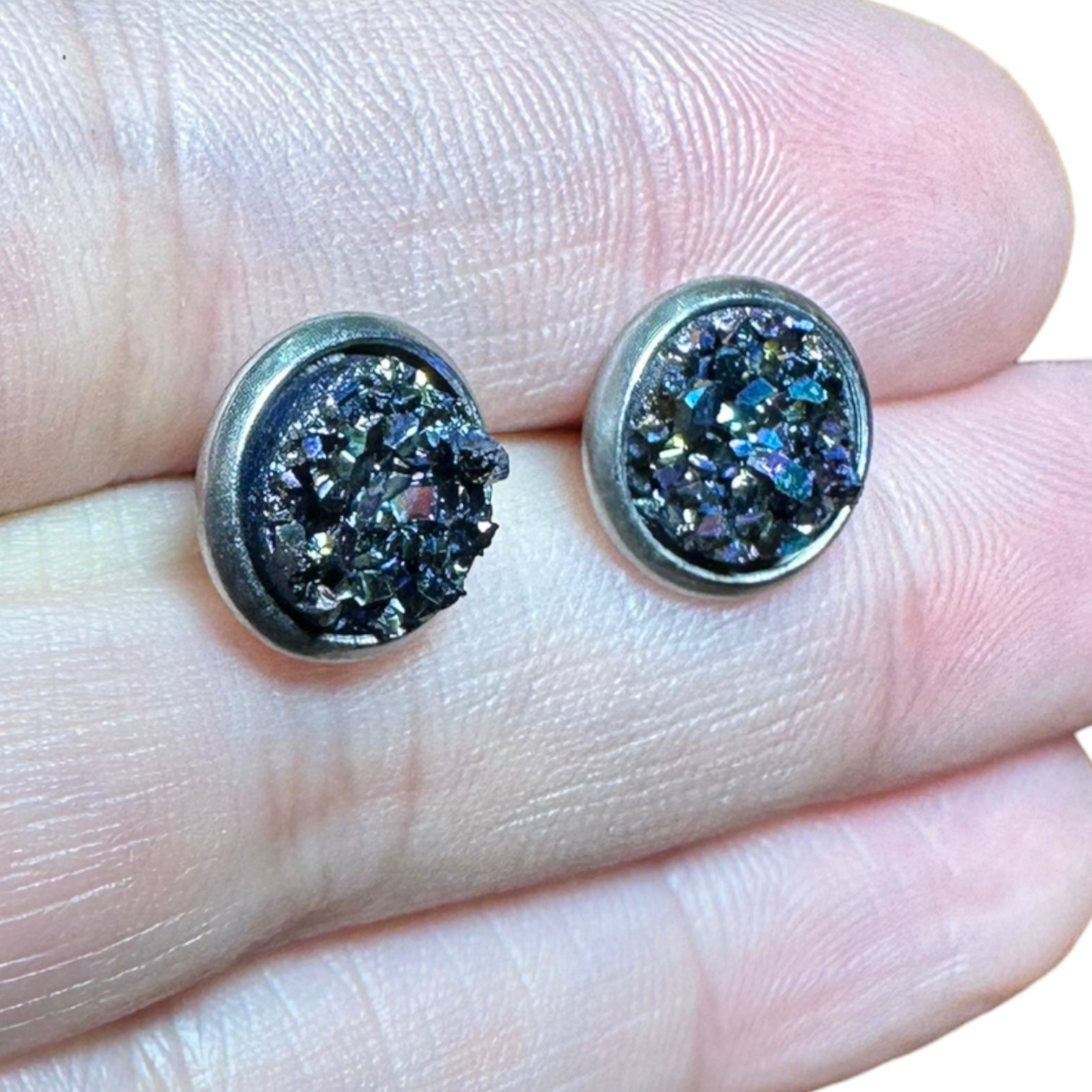 8MM Hypoallergenic Metallic Blue Druzy Earring Studs