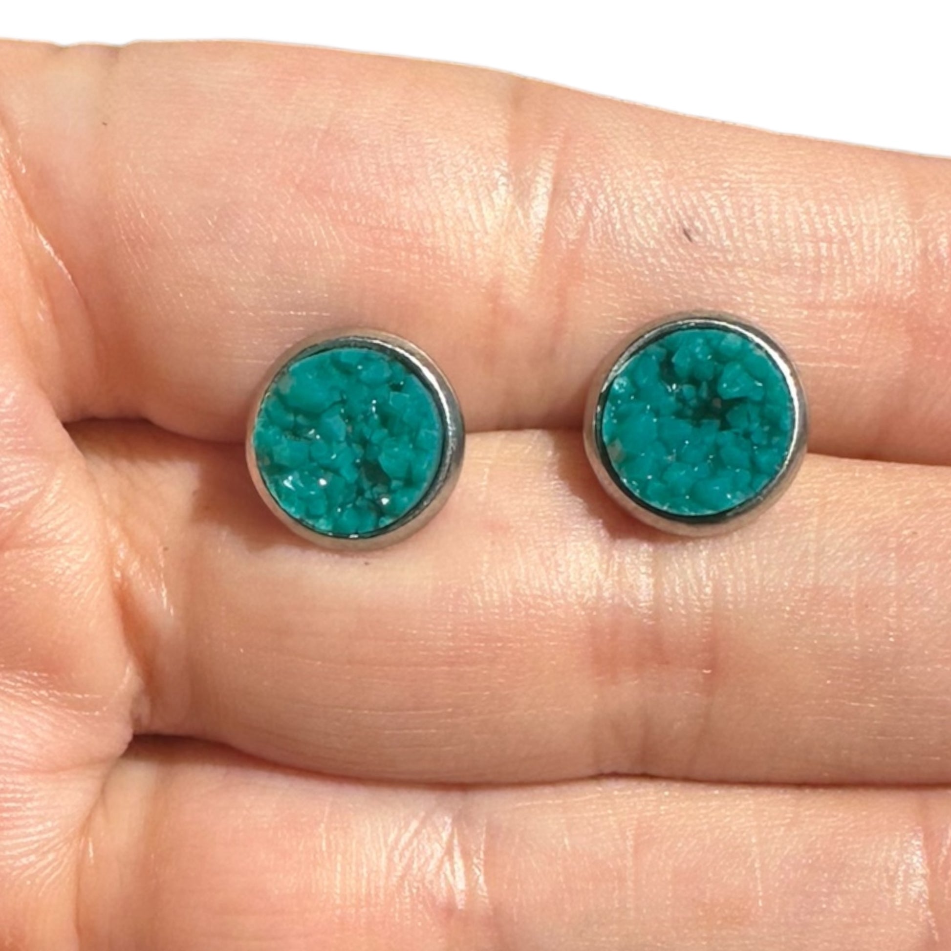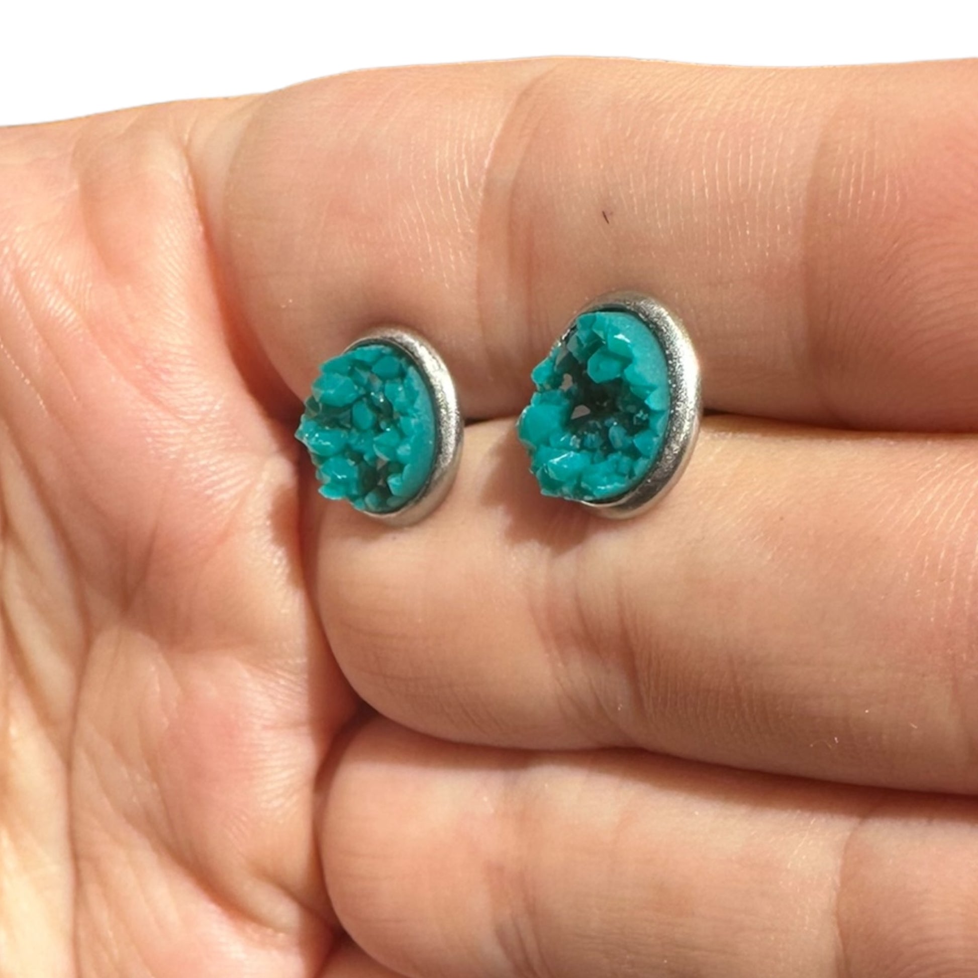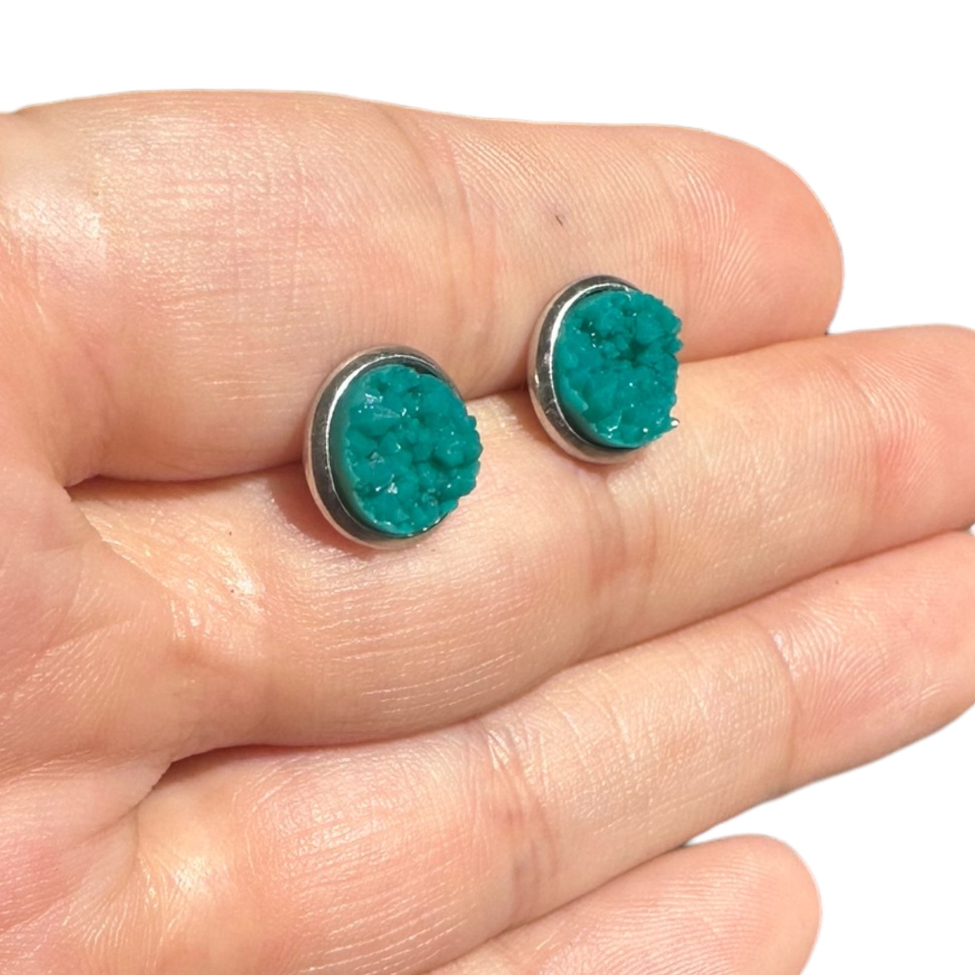8MM Hypoallergenic Teal Faux Druzy Earring Studs