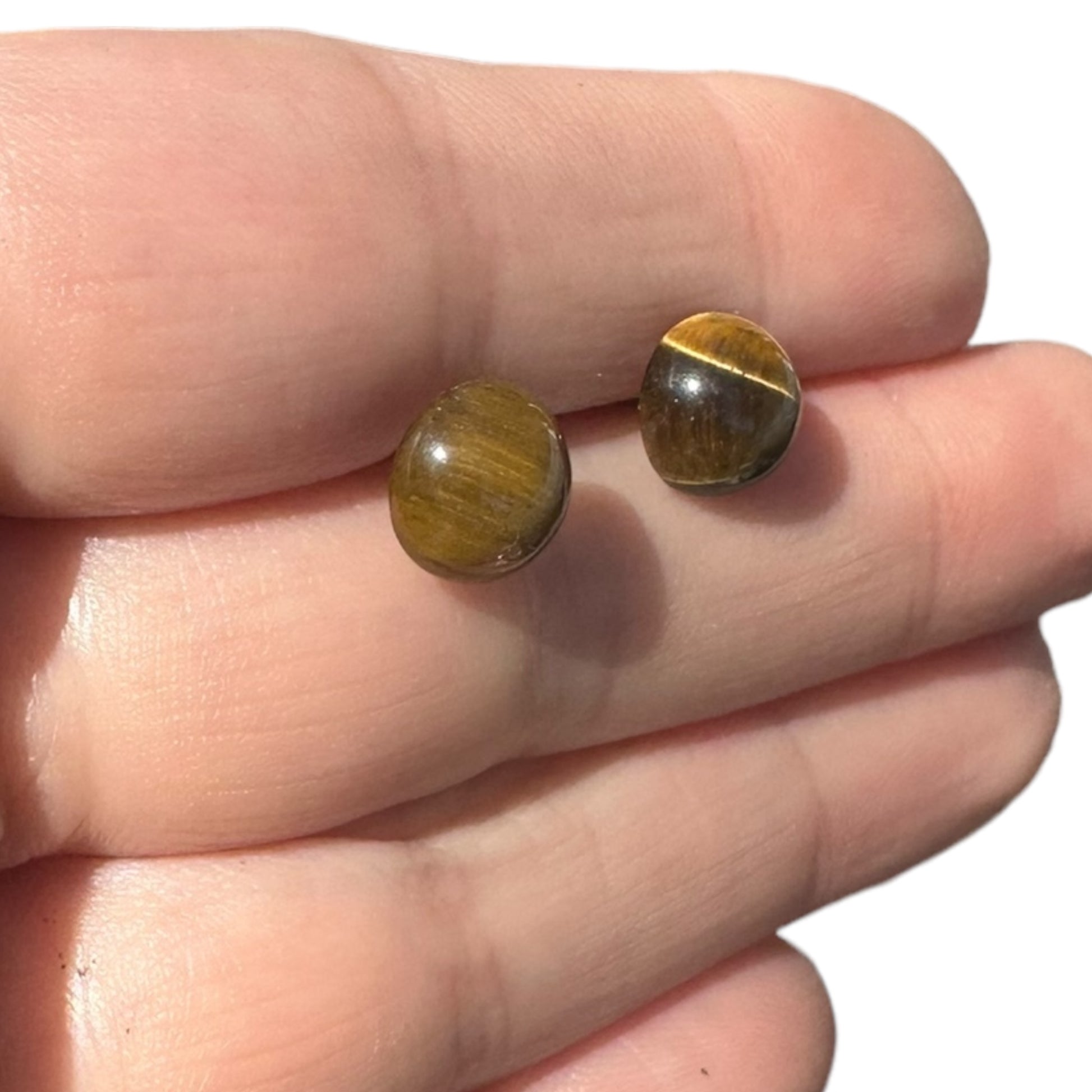 8MM Hypoallergenic Tiger's Eye Crystal Earring Studs
