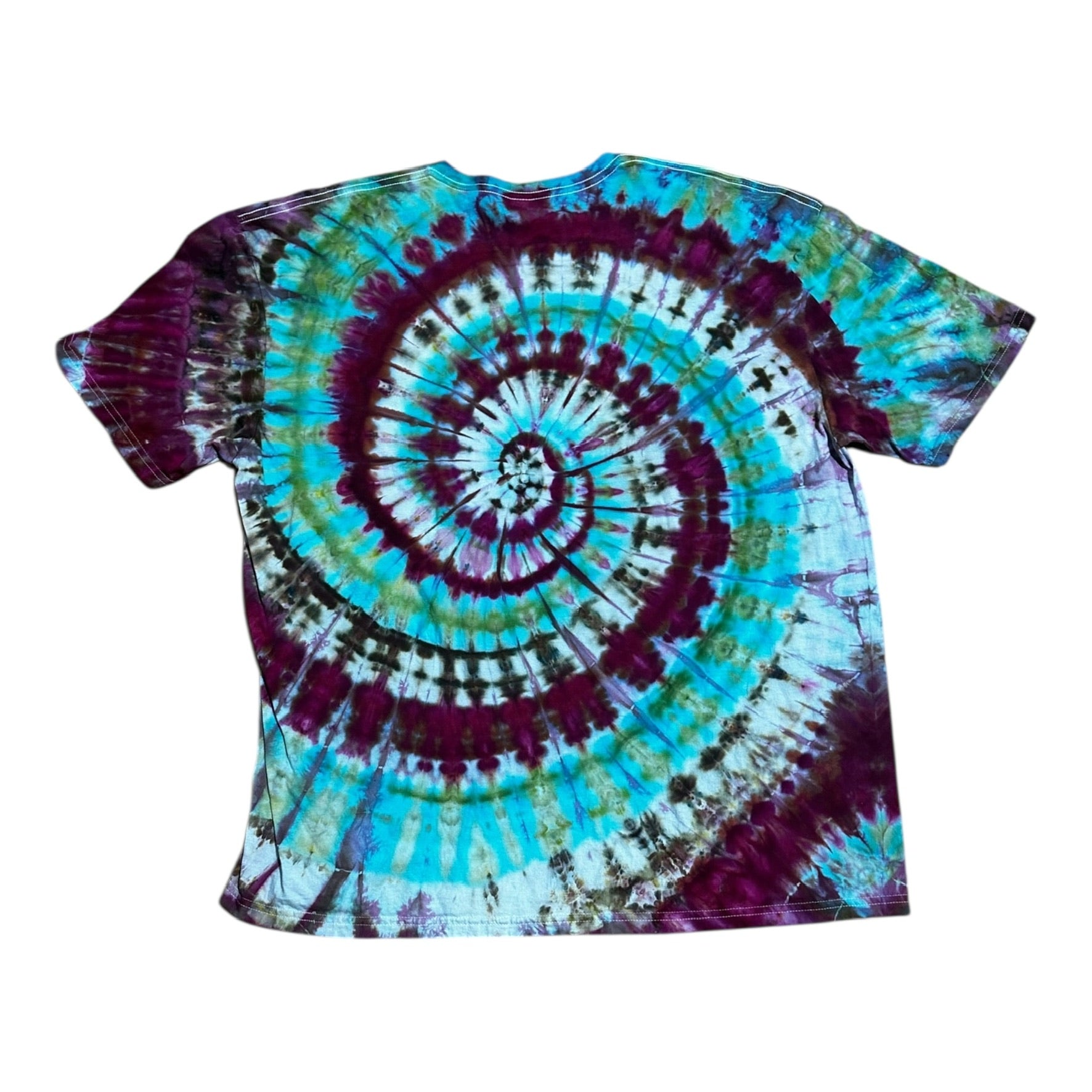 Adult 2XL Fuchsia Green Blue and Brown Spiral Ice Dye Tie Dye T-Shirt