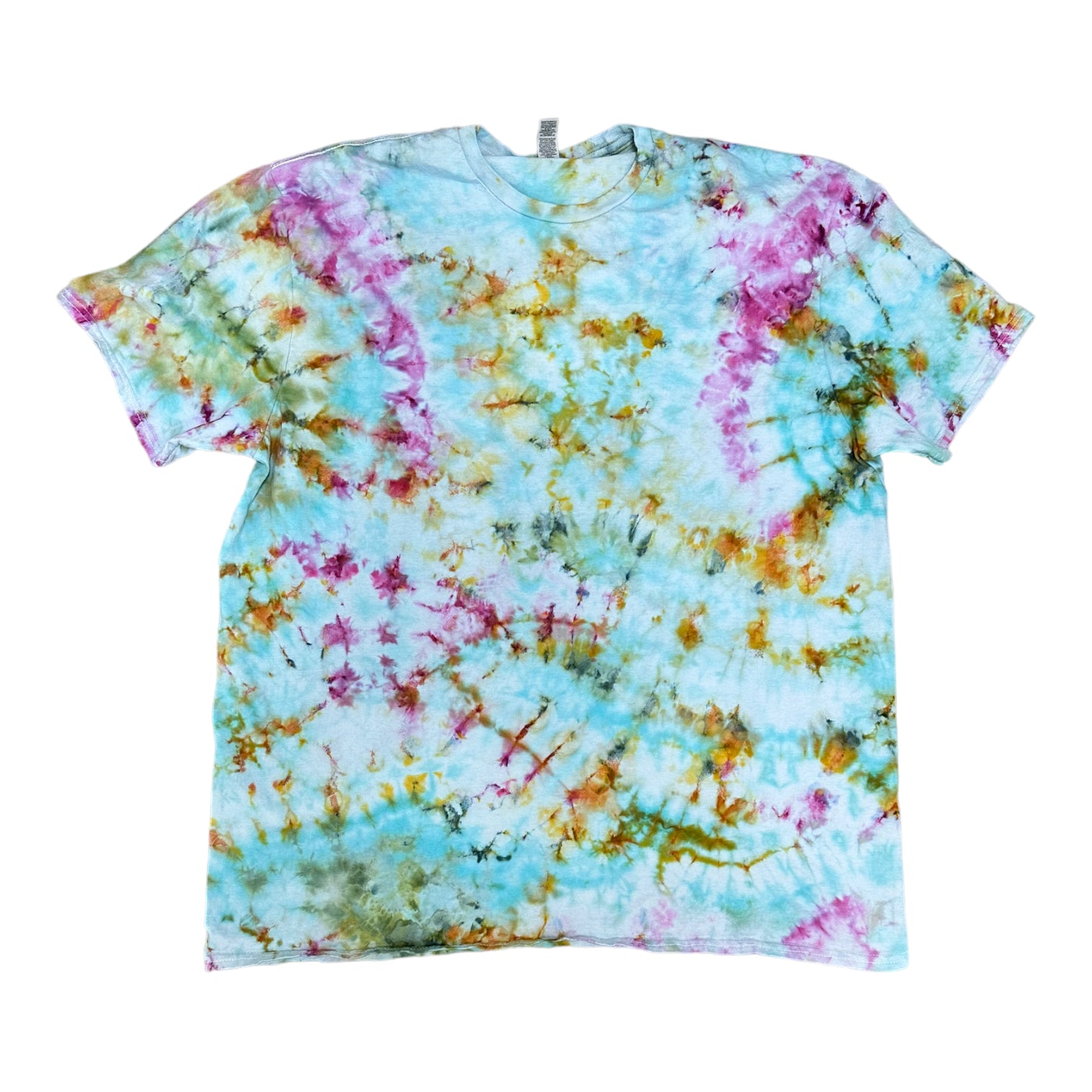 Adult 2XL Purple Baby Blue Green and Golden Yellow Scrunch Ice Dye Tie Dye Shirt