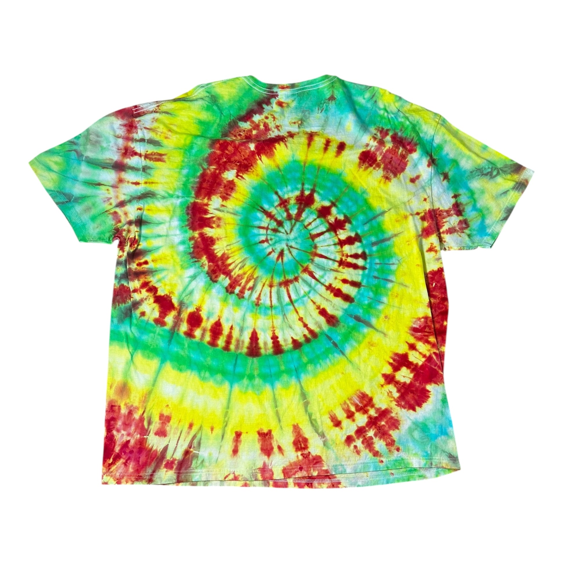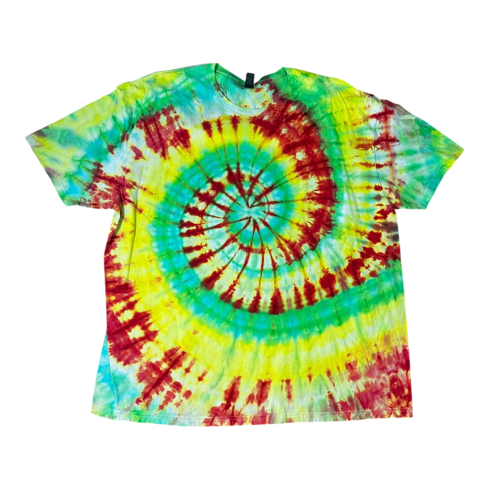 Adult 3XL Blue Green Red and Yellow Spiral Ice Dye Tie Dye Shirt