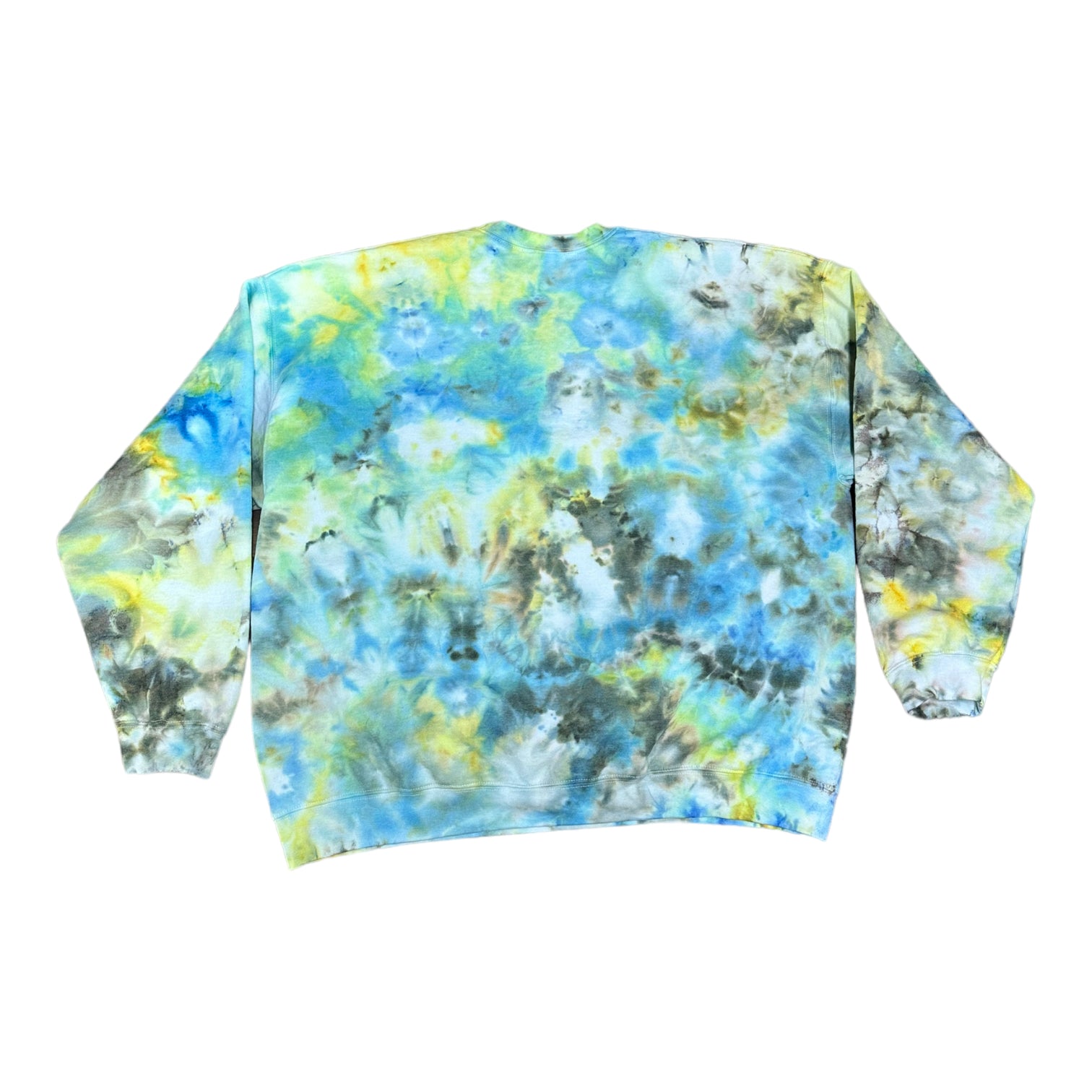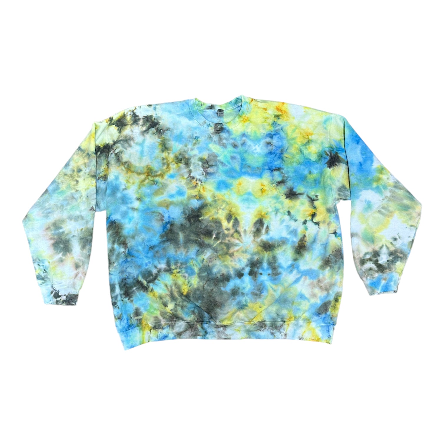 Adult 3XL Blue Yellow and Green Scrunch Ice Tie Dye Crewneck Sweater