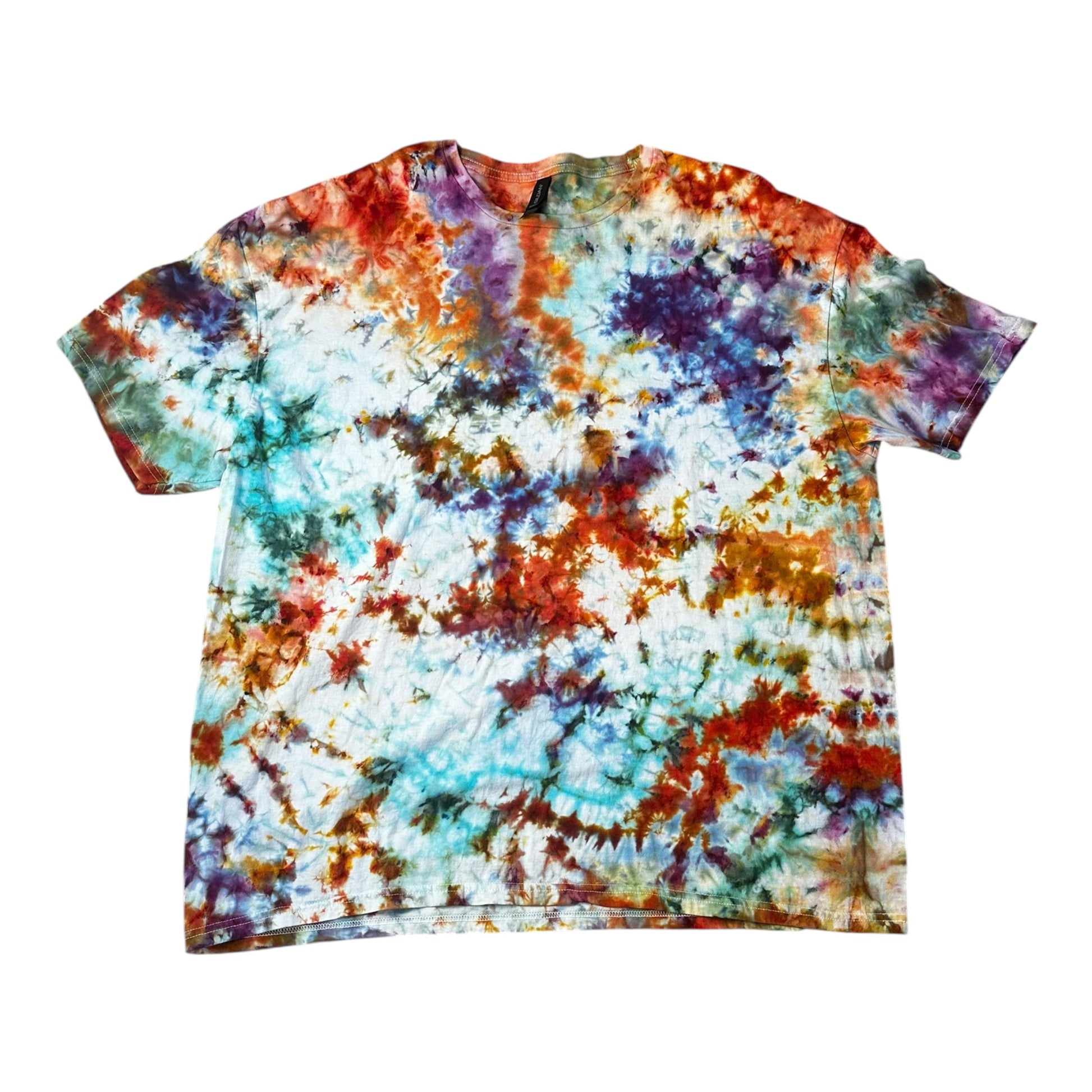 Adult 3XL Rust Orange Purple and Blue Scrunch Ice Dye Tie Dye Shirt